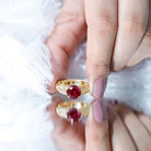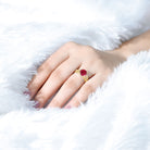 Surprise your special someone with this alluring Band Ring. Adorned with a 7 MM Round Shape created ruby in a prong setting, it is crafted from solid gold for a touch of elegance. This solid gold ring will add a mesmerizing touch to any jewelry collection.