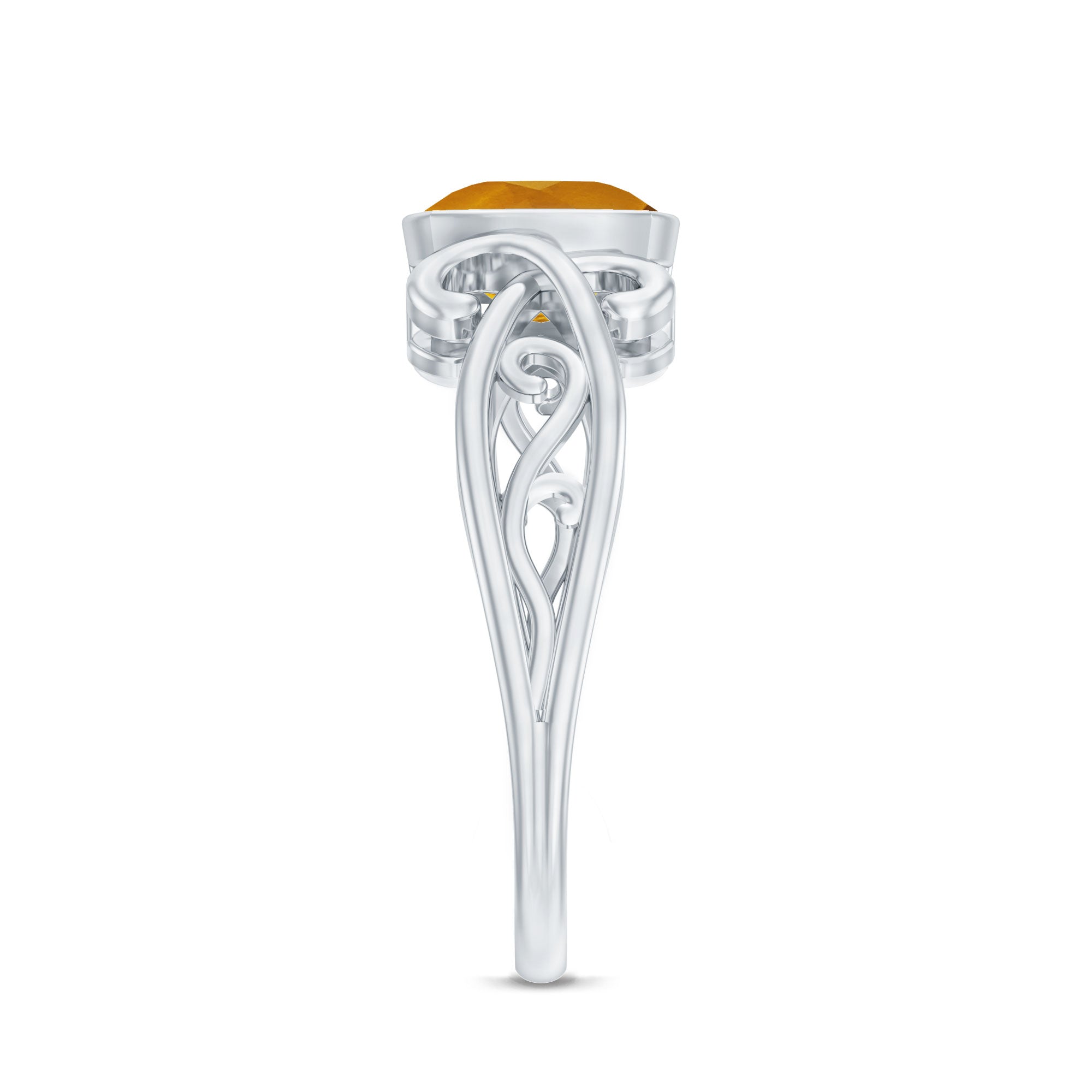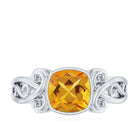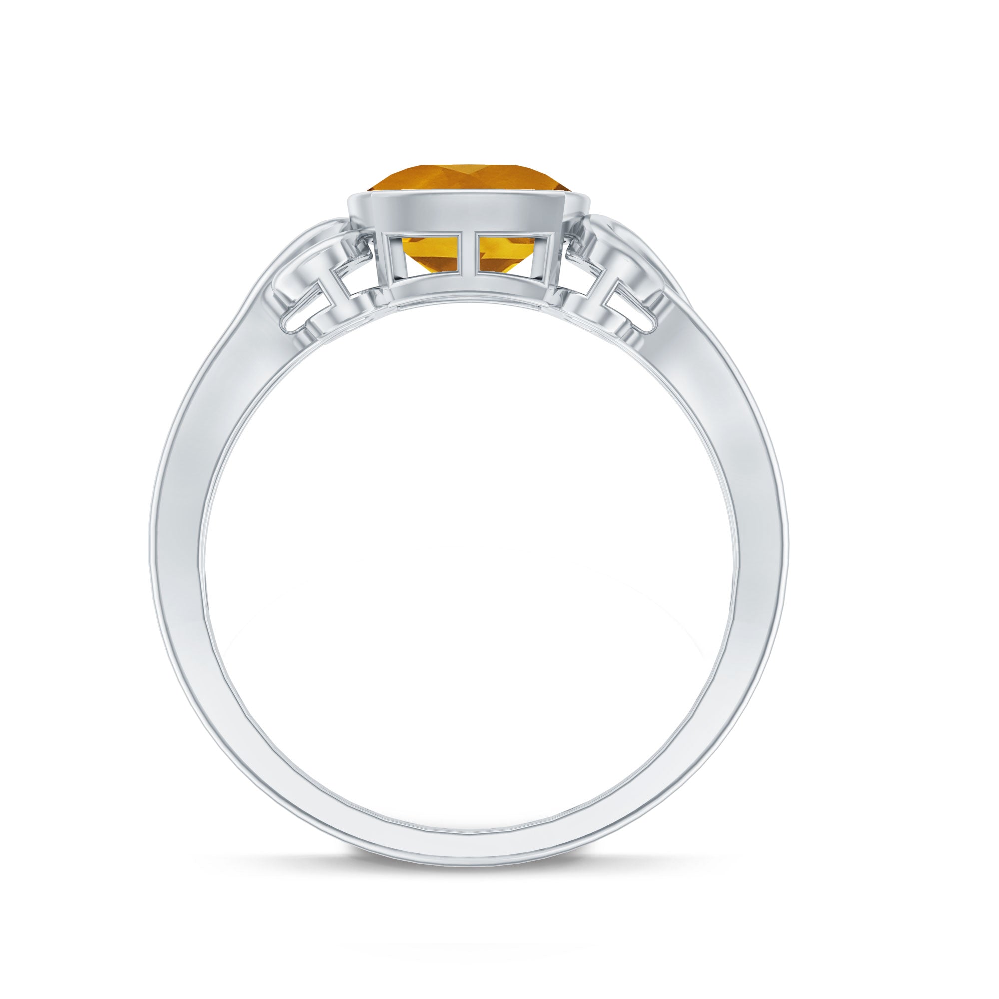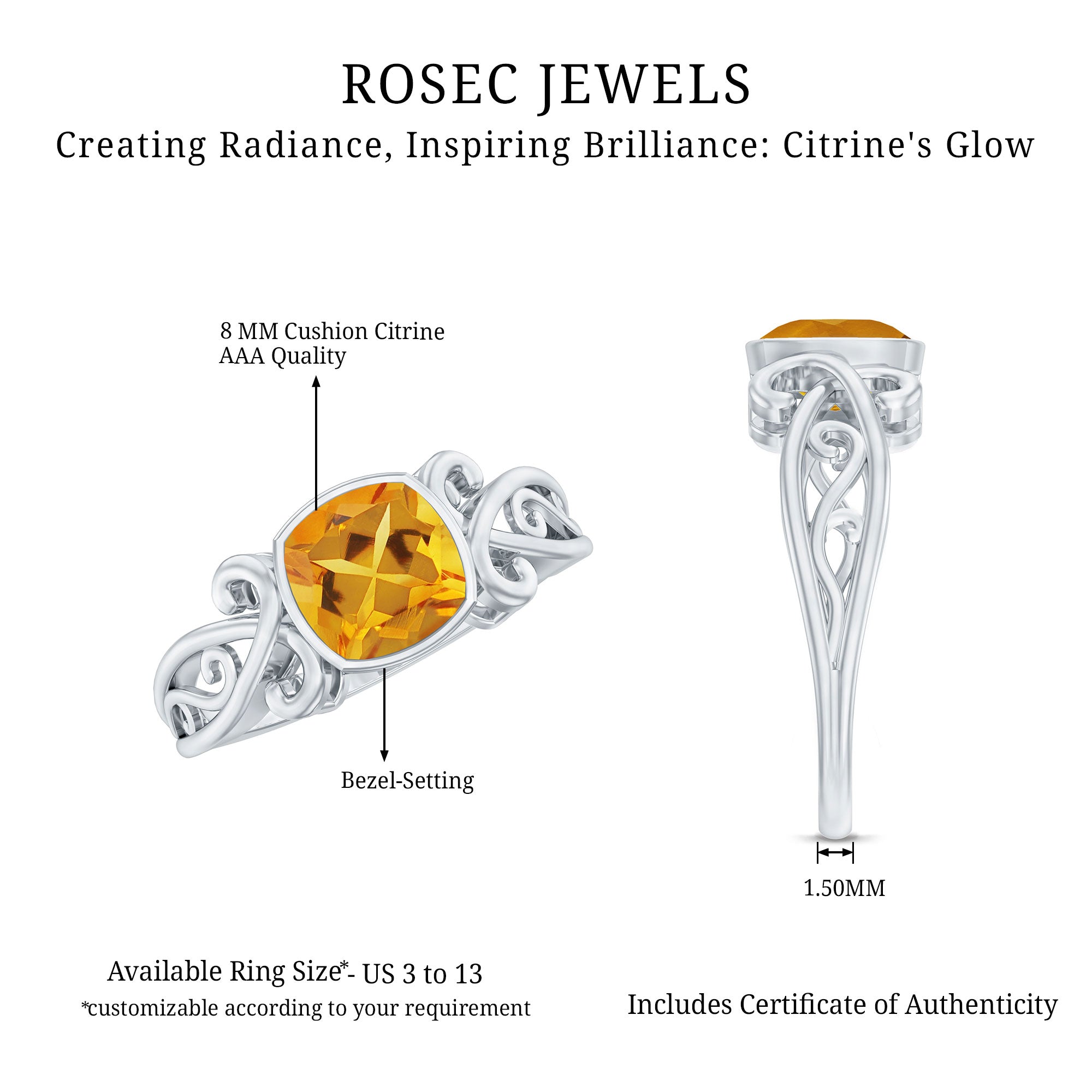 Vintage Style Cushion Citrine Solitaire Ring in Bezel Setting
