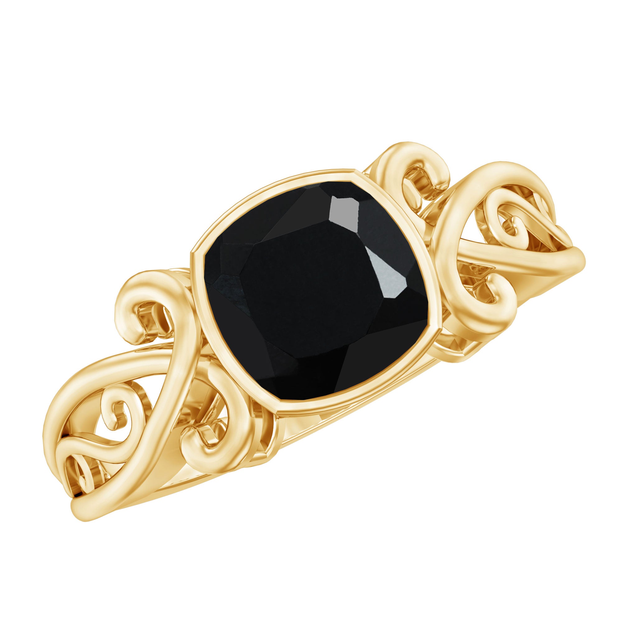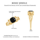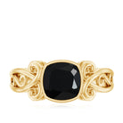 This magnificent Created Black Diamond Solitaire Ring is the epitome of timeless elegance. The cushion cut created black diamond, set in a sophisticated bezel setting, is the centerpiece of the ring, exuding a captivating sparkle. The vintage style gold shank perfectly complements the center stone, creating a sophisticated and classic look. This vintage inspired ring is perfect for those seeking a sophisticated and timeless piece of jewelry for a special occasion, such as an engagement or wedding.