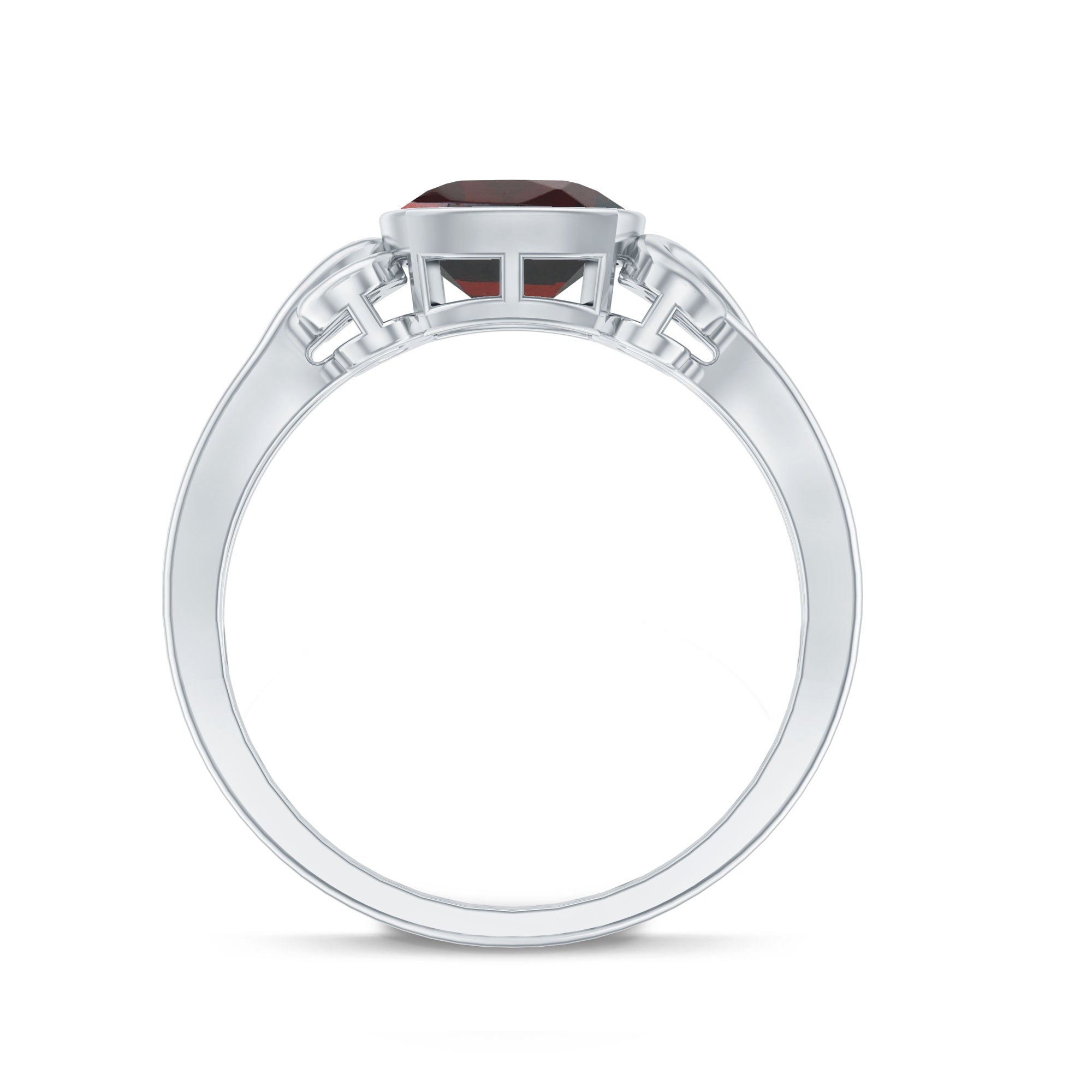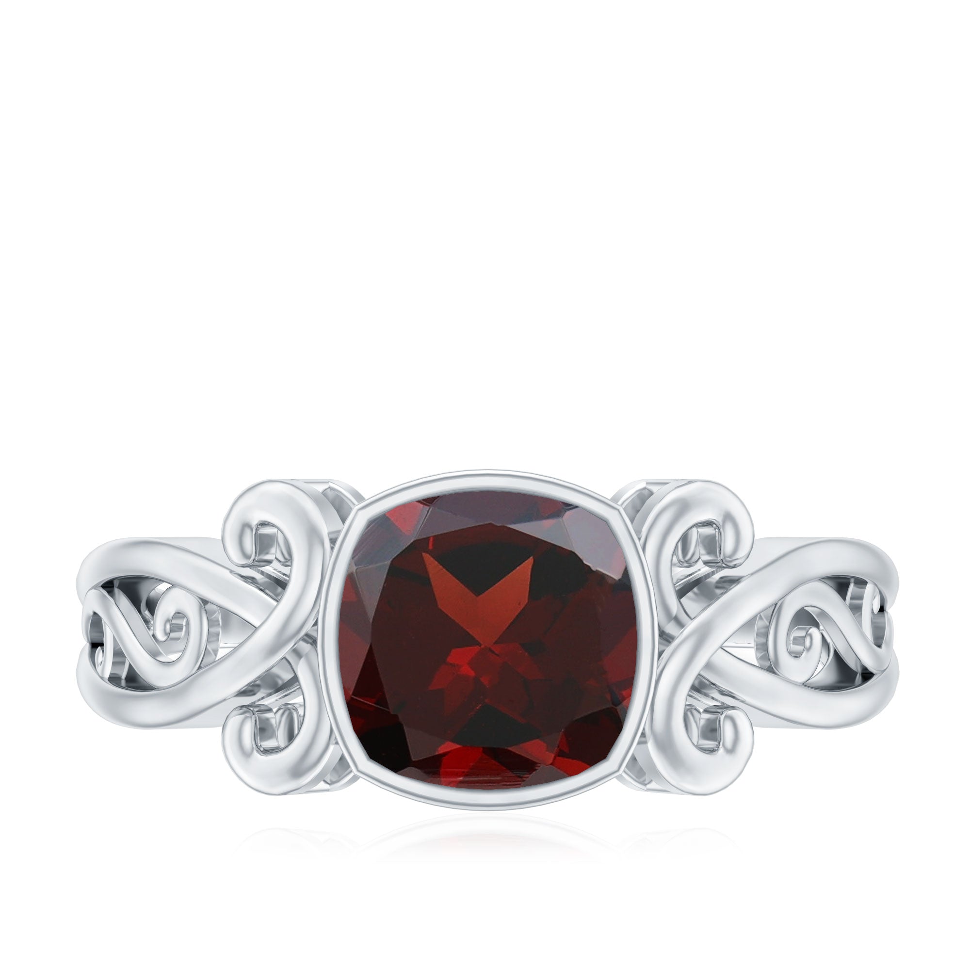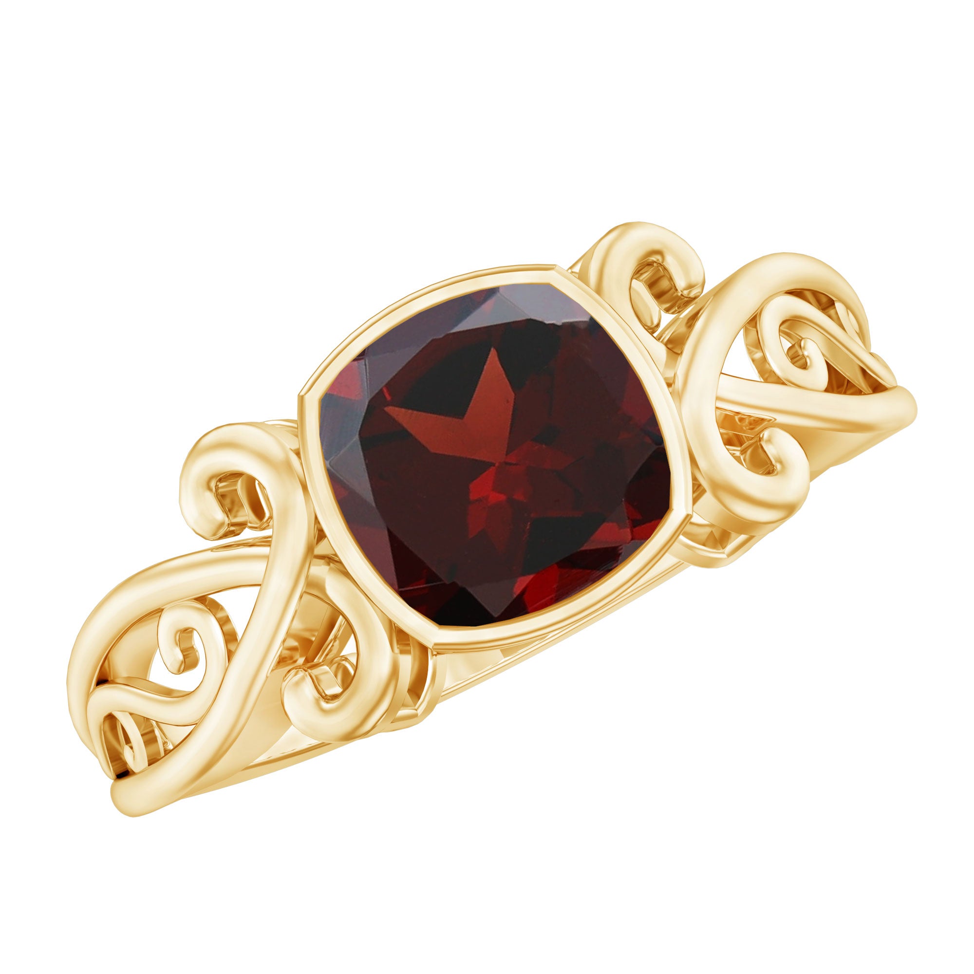 Embrace vintage elegance with a cushion-cut Garnet Solitaire Ring in a bezel setting. This stunning piece adds timeless charm to your jewelry collection.