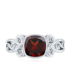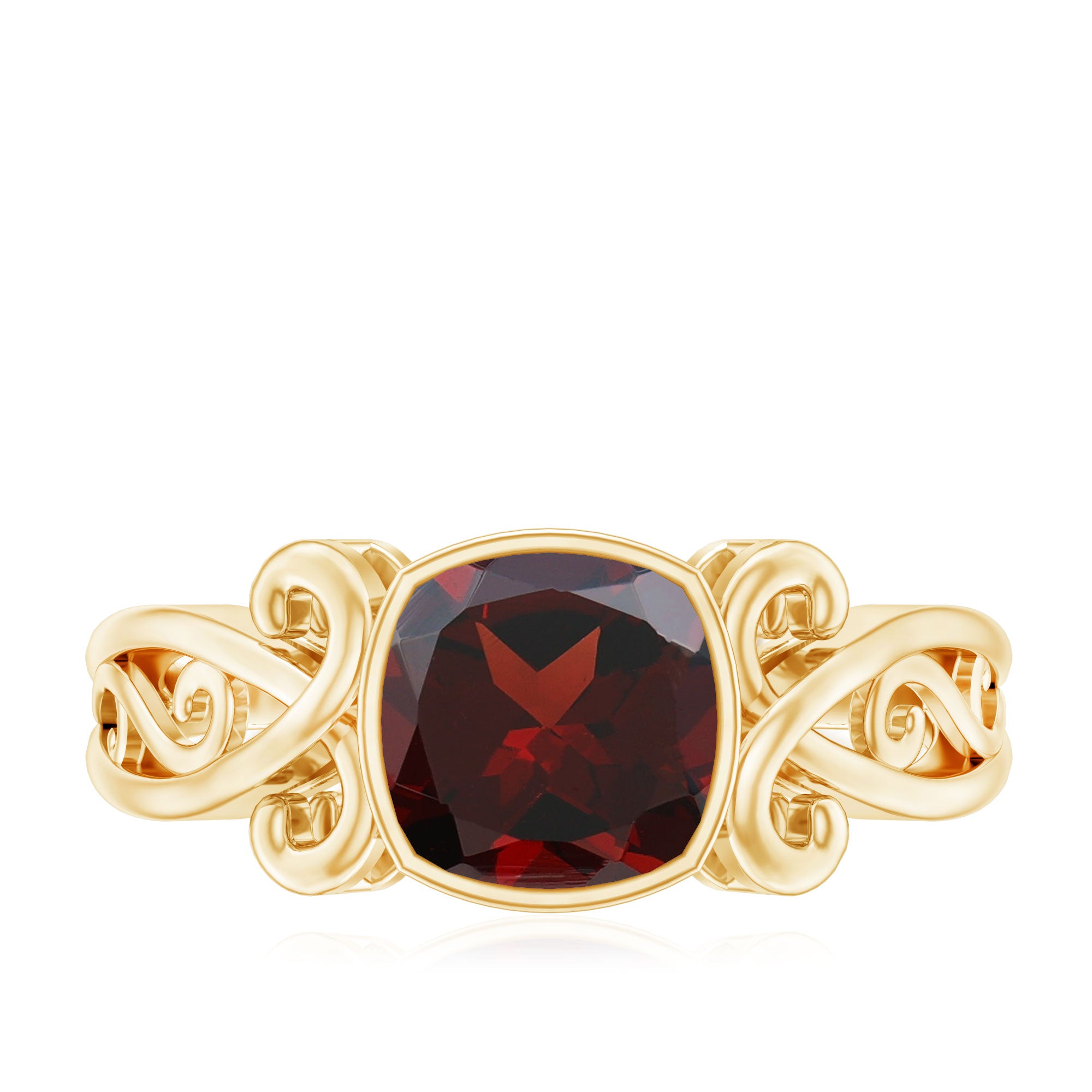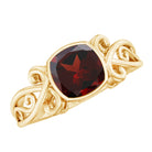 Vintage Style Cushion Garnet Solitaire Ring in Bezel Setting