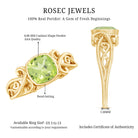 Step into timeless elegance with this Vintage Style Solitaire Ring adorned with a Cushion Cut Peridot set in Bezel Setting, designed to be timeless.