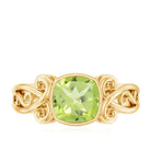 Vintage Style Cushion Cut Peridot Solitaire Ring in Bezel Setting