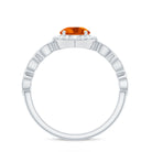 Vintage Style Fire Opal Engagement Ring with Diamond Accent