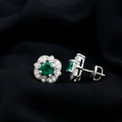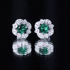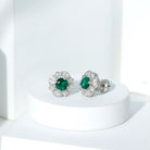 Vintage Style Lab Emerald Flower Stud Earrings in Silver
