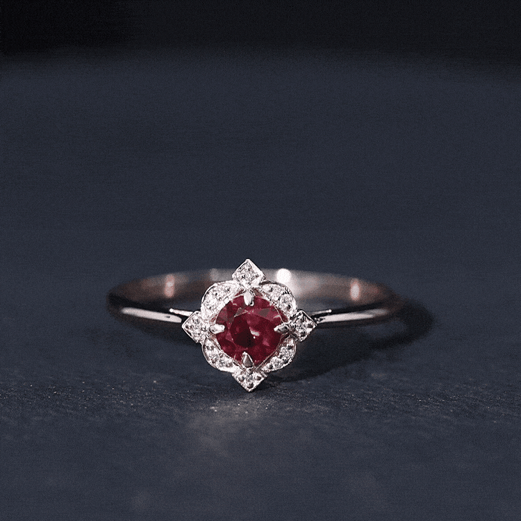 Vintage Style Lab Grown Ruby and Diamond Engagement Ring