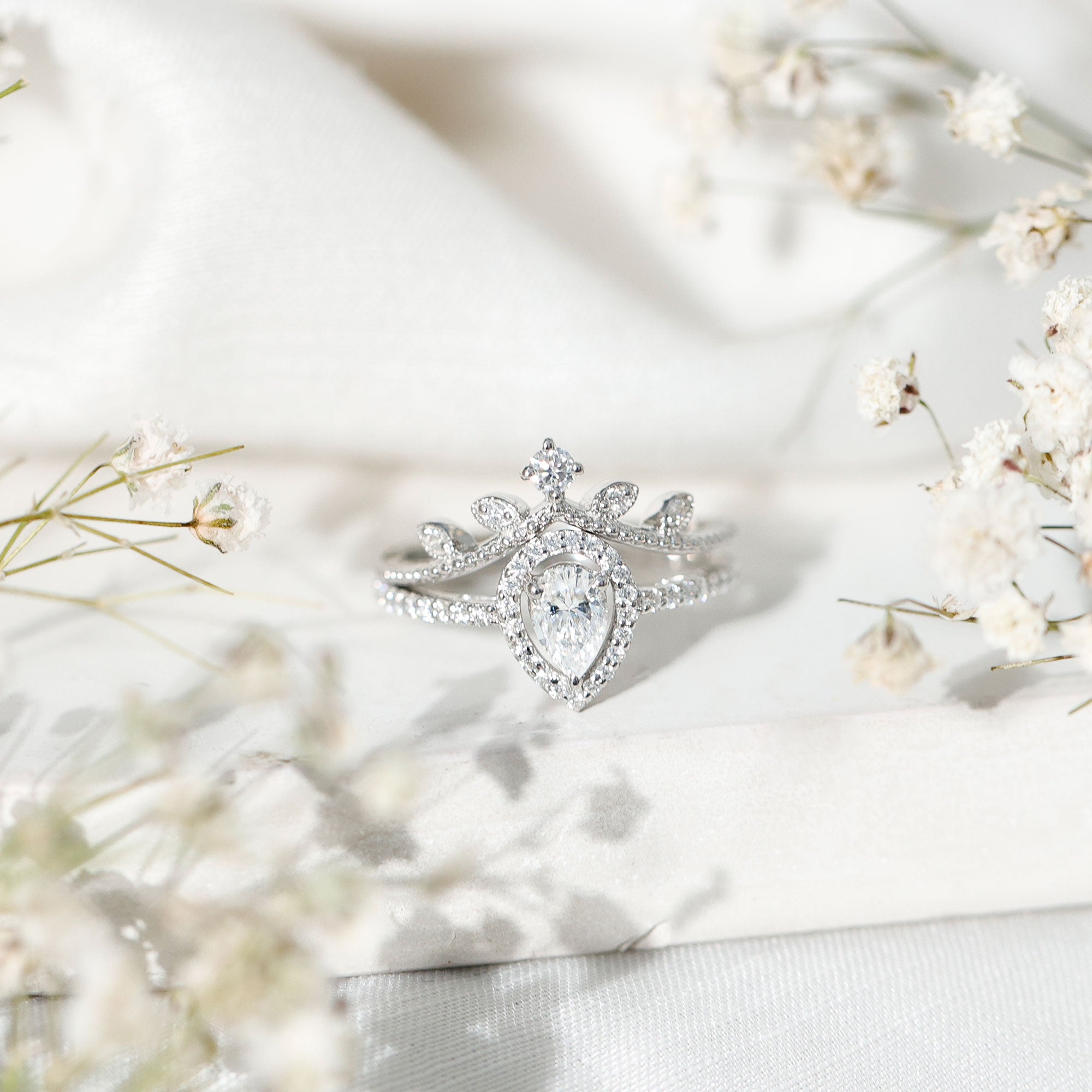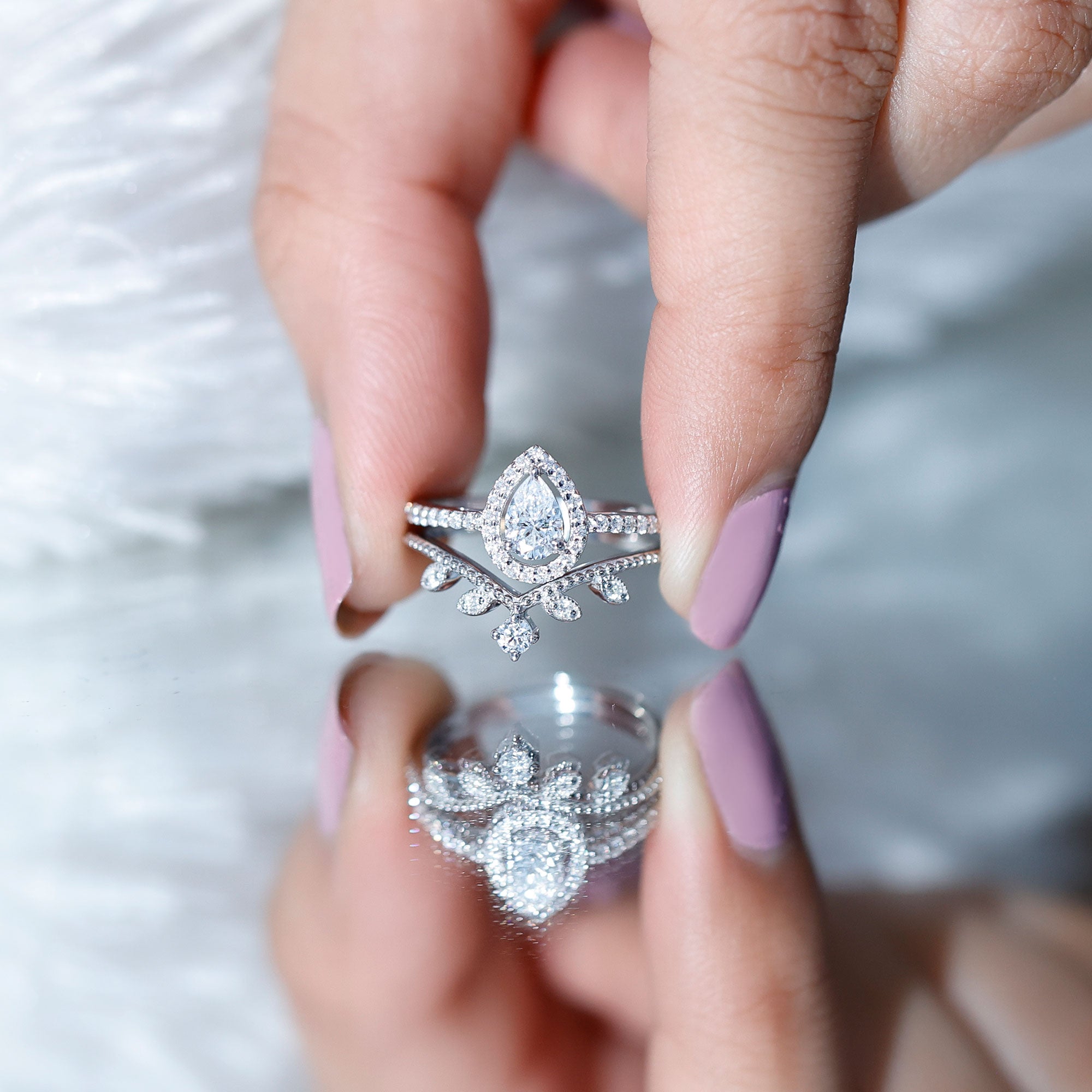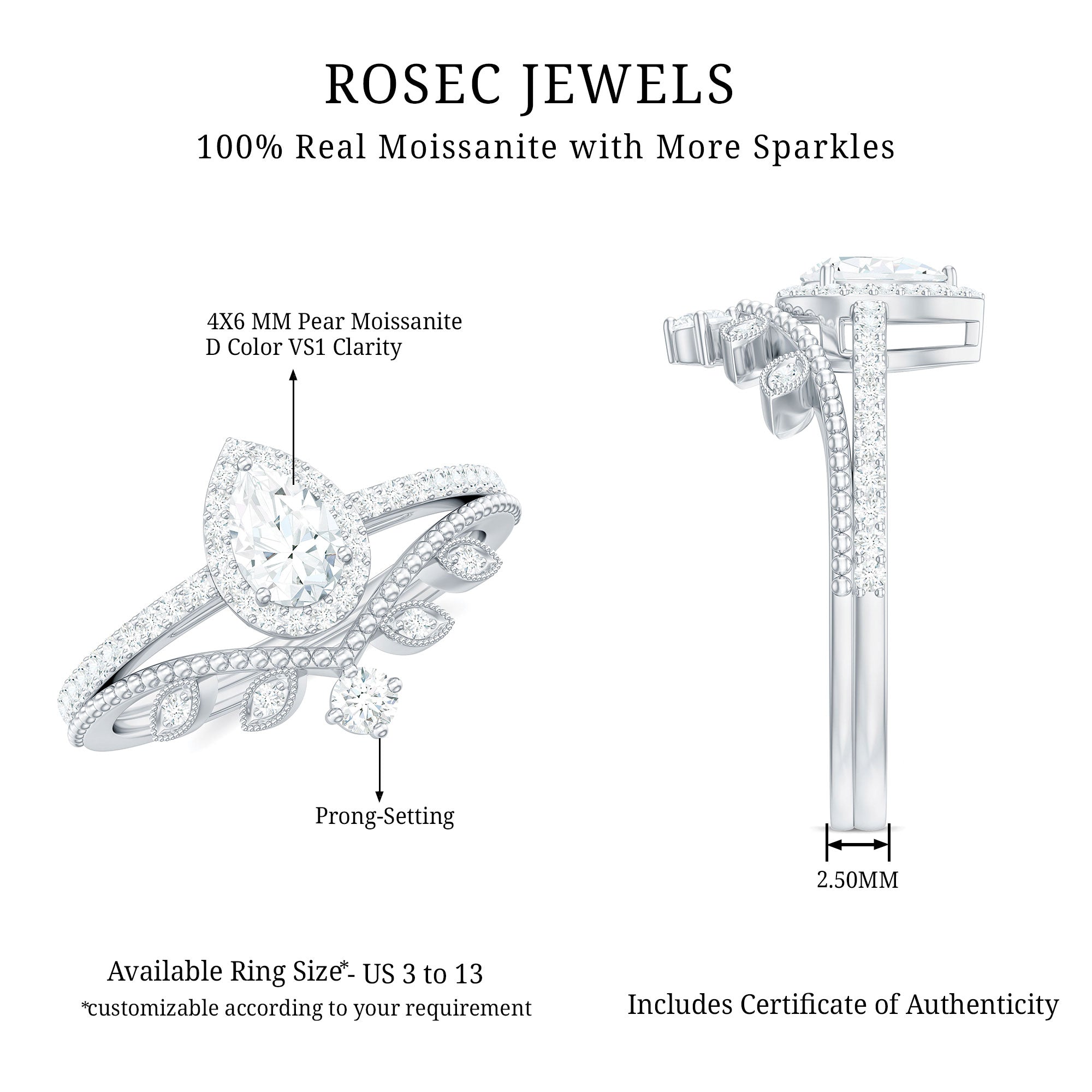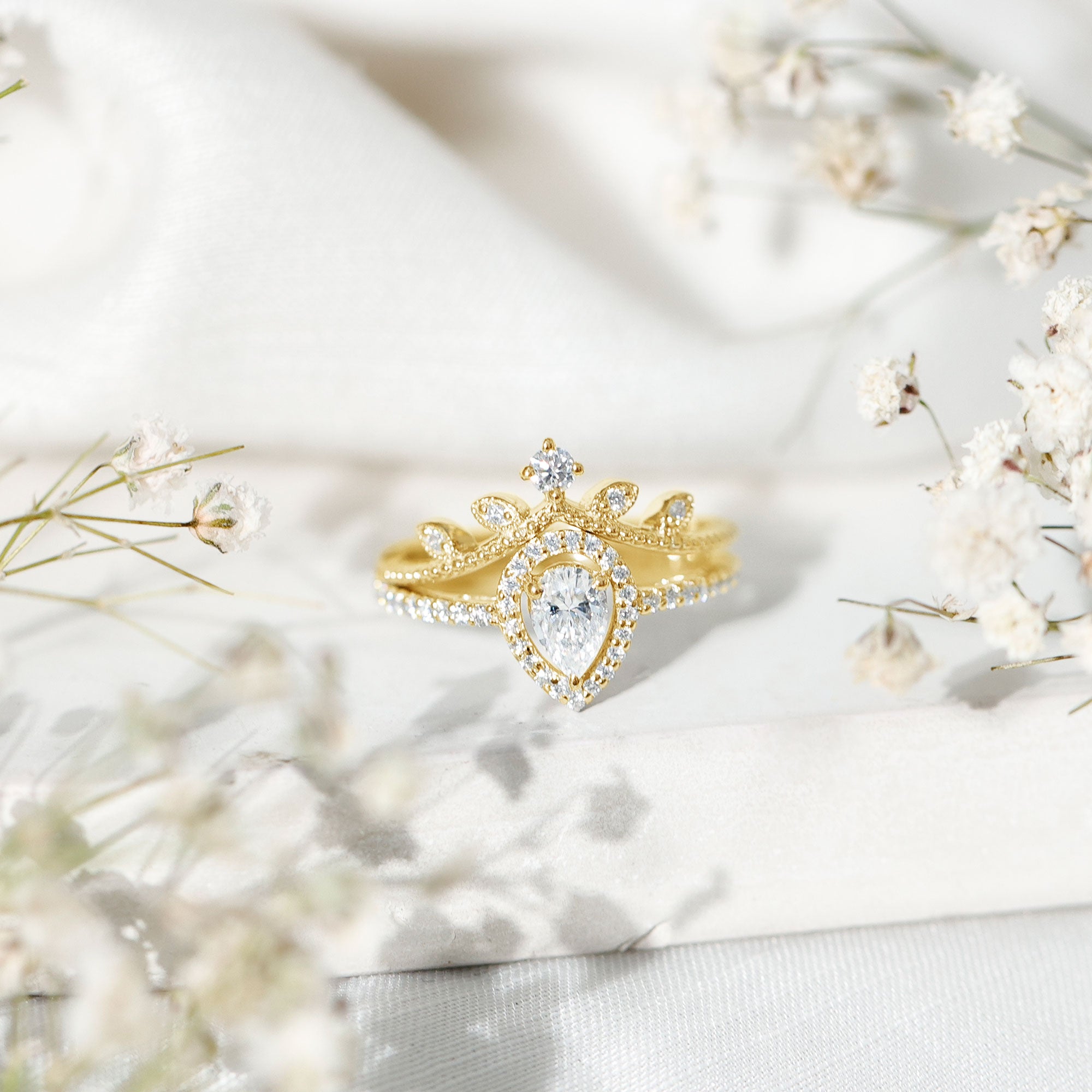 Vintage Style Moissanite Teardrop Wedding Ring Set