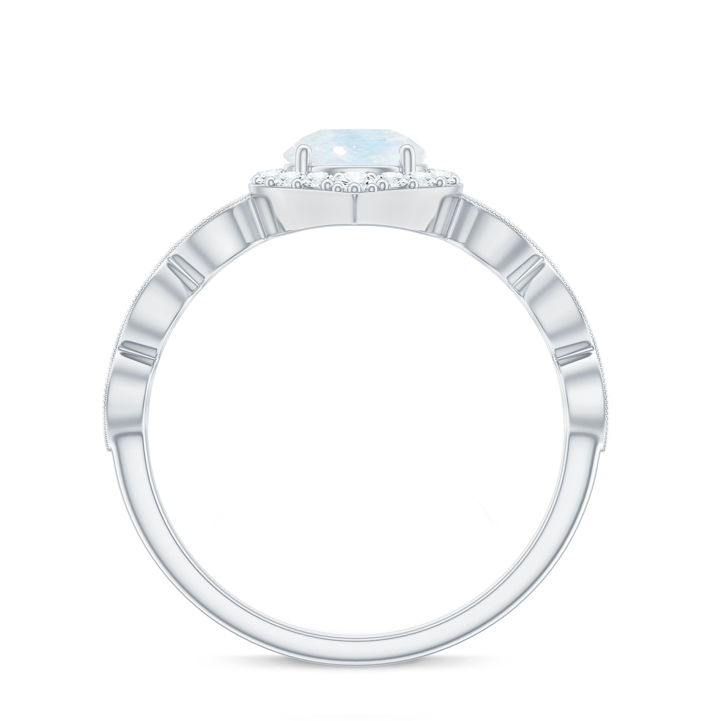 Vintage Style Moonstone Engagement Ring with Diamond Accent