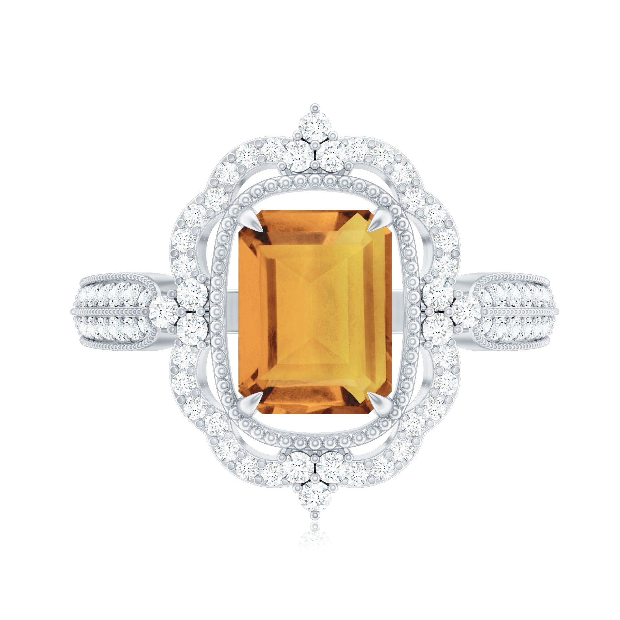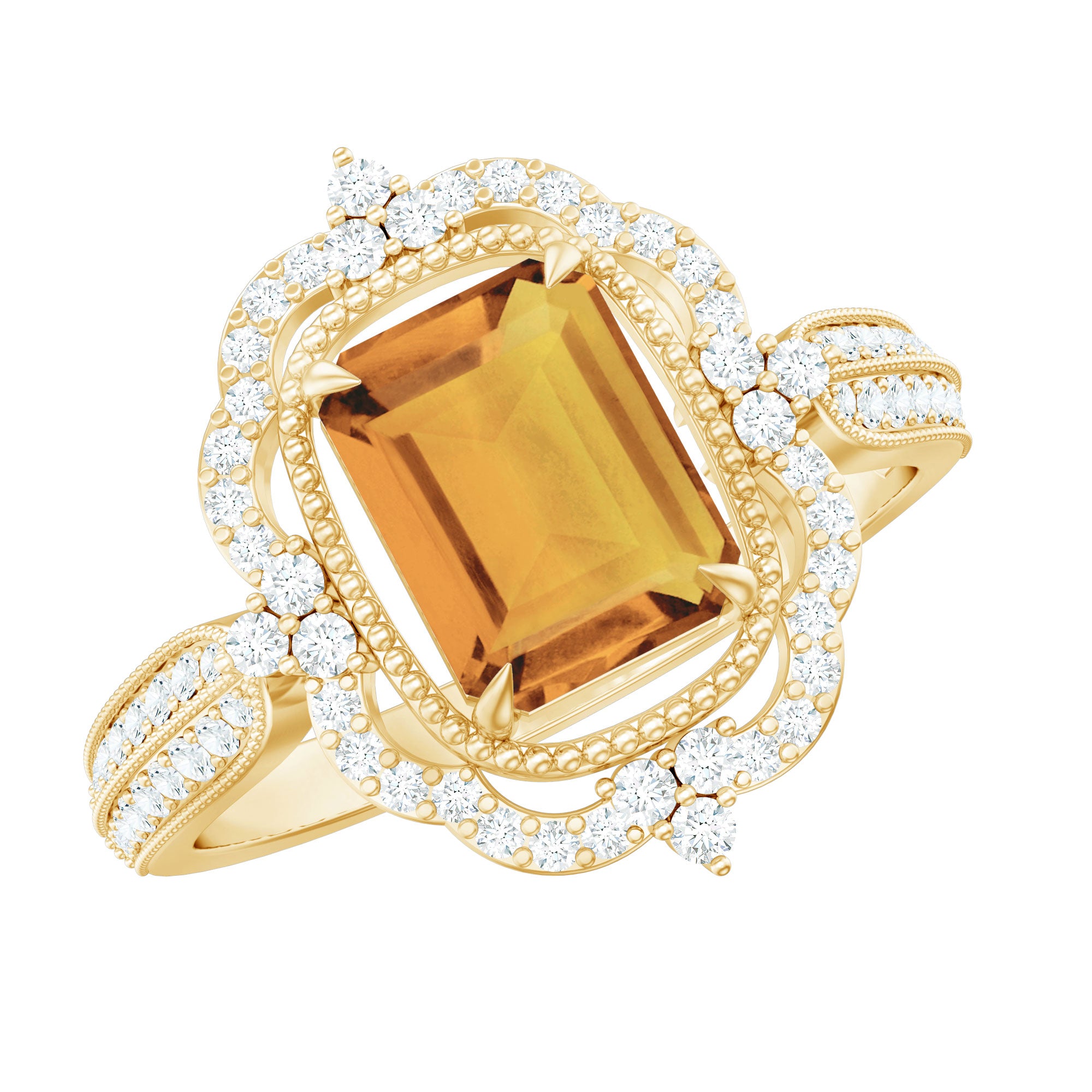 Vintage Style Octagon Citrine Engagement Ring with Moissanite Floral Halo
