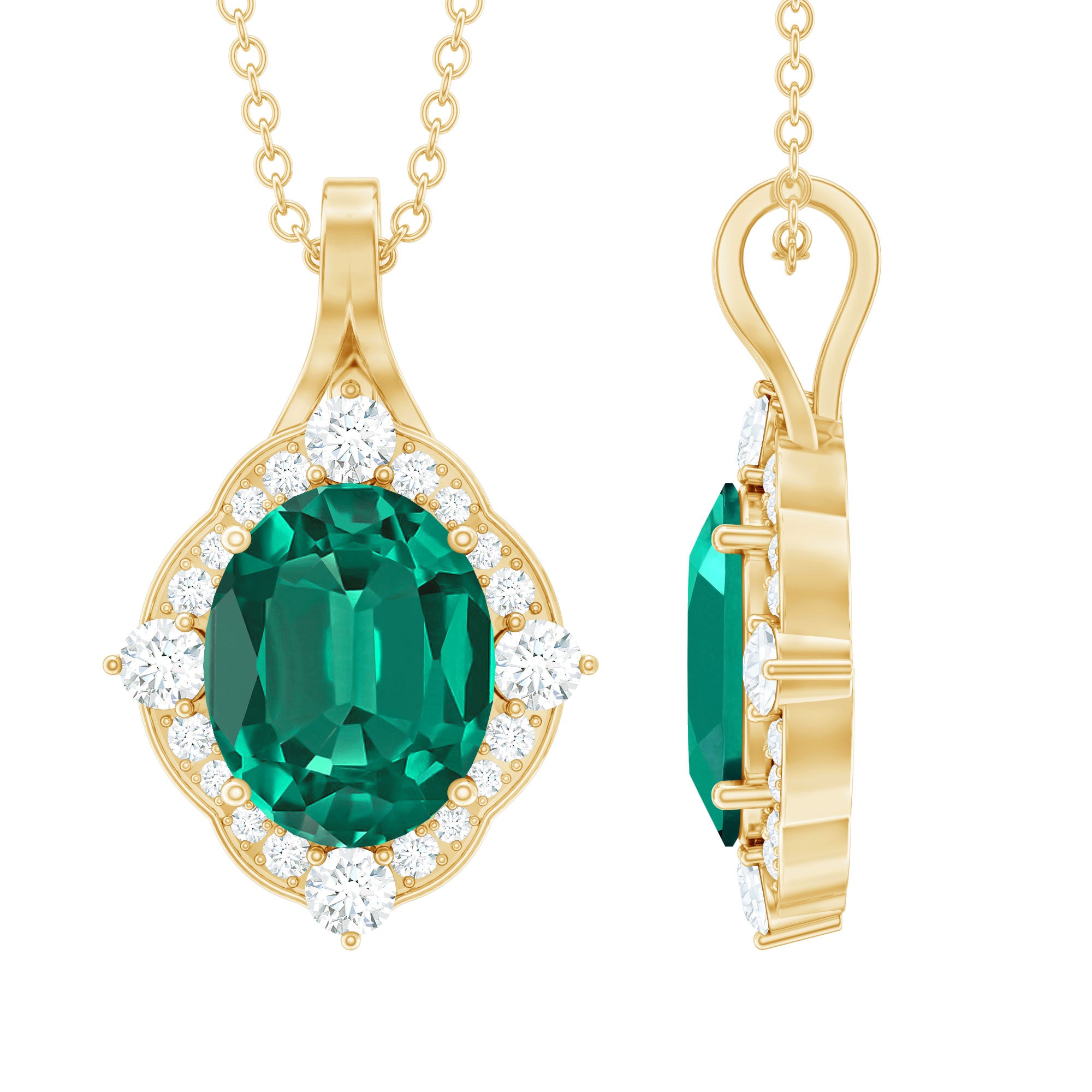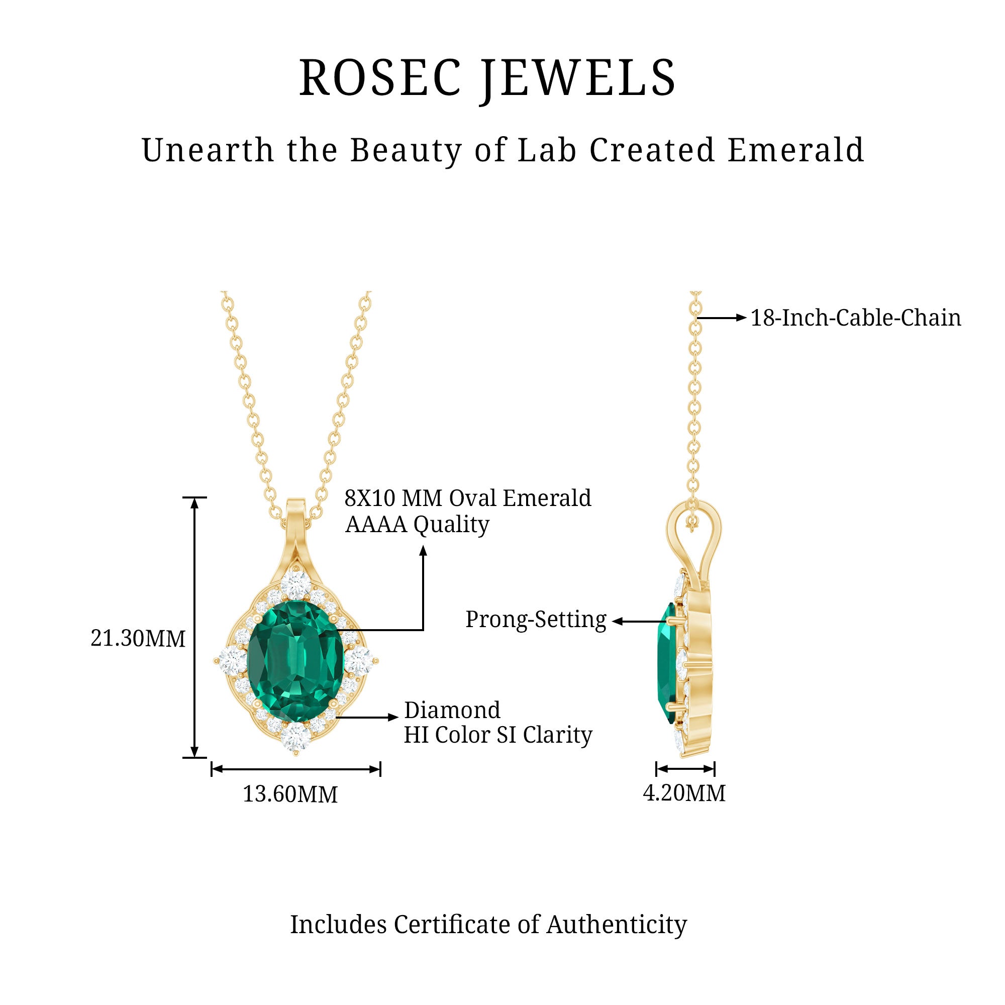 Vintage Style Oval Halo Pendant with Created Emerald and Diamond