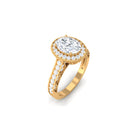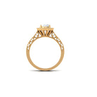 Make a commitment of togetherness to your beloved with this classic vintage-style engagement ring. Crafted from solid gold, the vintage ring features an elegant oval-shaped zircon in the center, surrounded by a halo and side stones, all perfectly complementing the crown shank design. The milgrain details on this engagement ring give it a distinct flair, adding to its already stunning appeal. This zircon gold engagement ring is a perfect way to show your love and affection to your special someone.