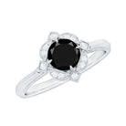 Round Cut Black Onyx and Diamond Flower Engagement Ring