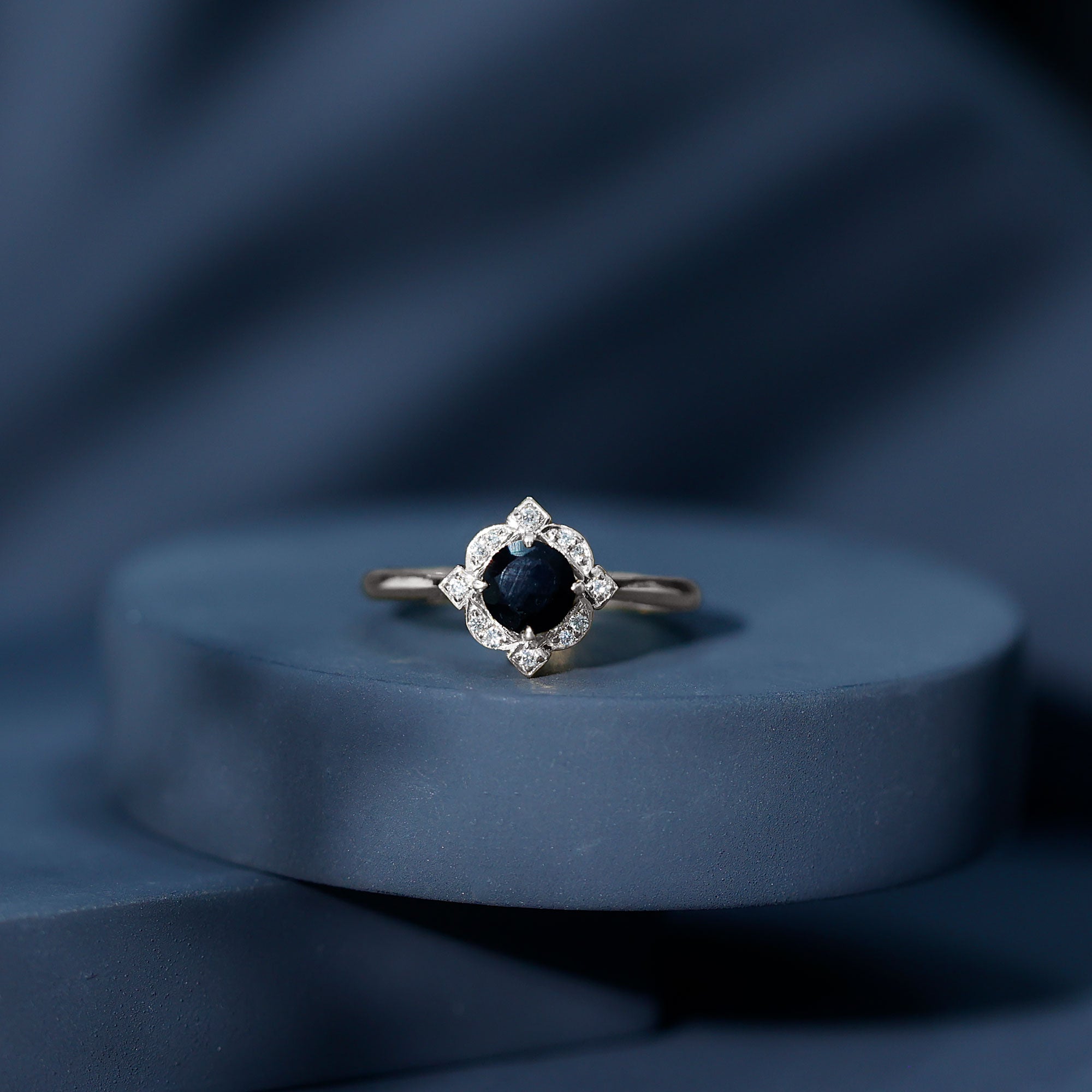 If she loves old-world vibes and meaningful details, this Vintage Black Onyx Ring is the one. It brings together classic beauty and timeless romance in the most charming way. At the center is a 5 MM round cut black onyx, set in secure claw setting. Surrounding the onyx is a floral halo of real diamonds, giving the Black Onyx Engagement Ring a delicate and antique feel - like something you find in a treasured heirloom box. The halo design not only adds sparkle but also softens the bold center stone, creating a balanced and beautiful look that feels both unique and graceful. Made with AAA quality black onyx and HI-SI quality diamonds, this Floral Engagement Ring is crafted to last and designed to be loved for years to come. It is perfect for proposals, anniversaries, or even as a thoughtful gift. The floral shape, vintage detailing, and rich contrast of stones make this Black Onyx and Diamond Ring a standout piece in any jewelry collection.