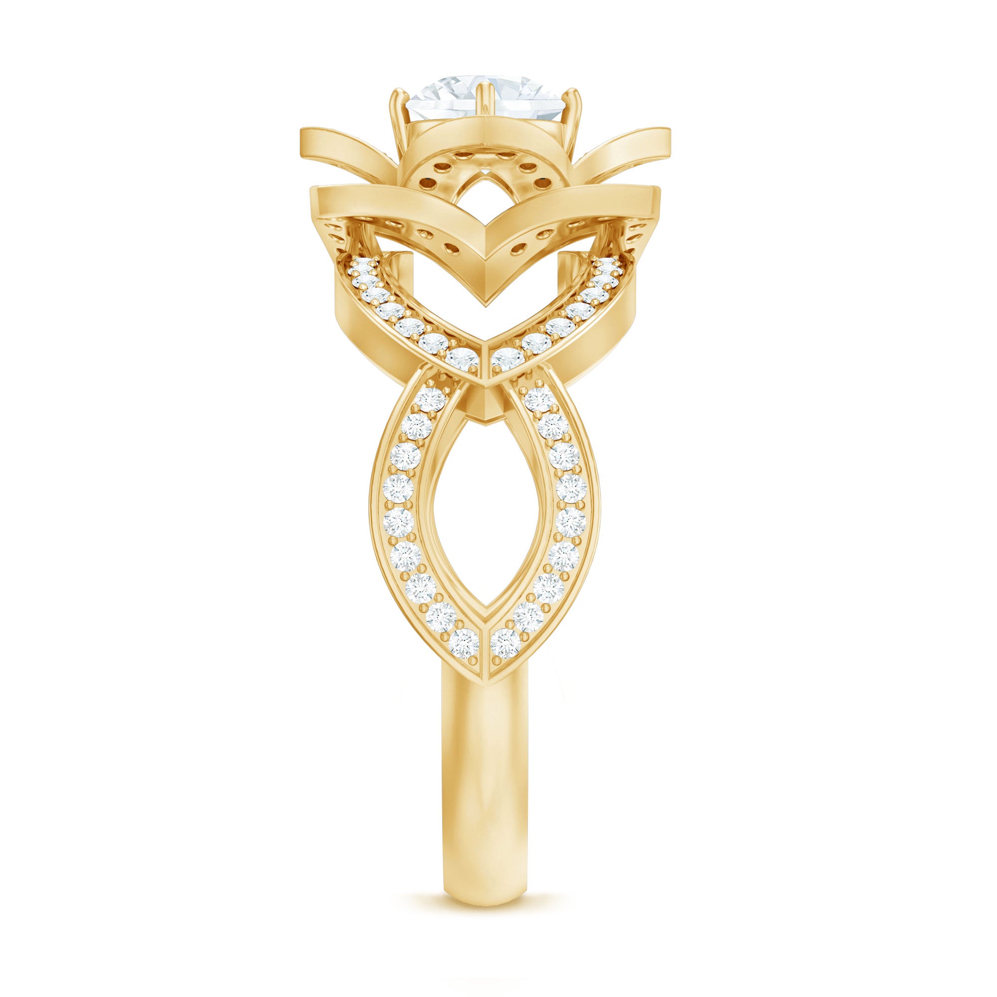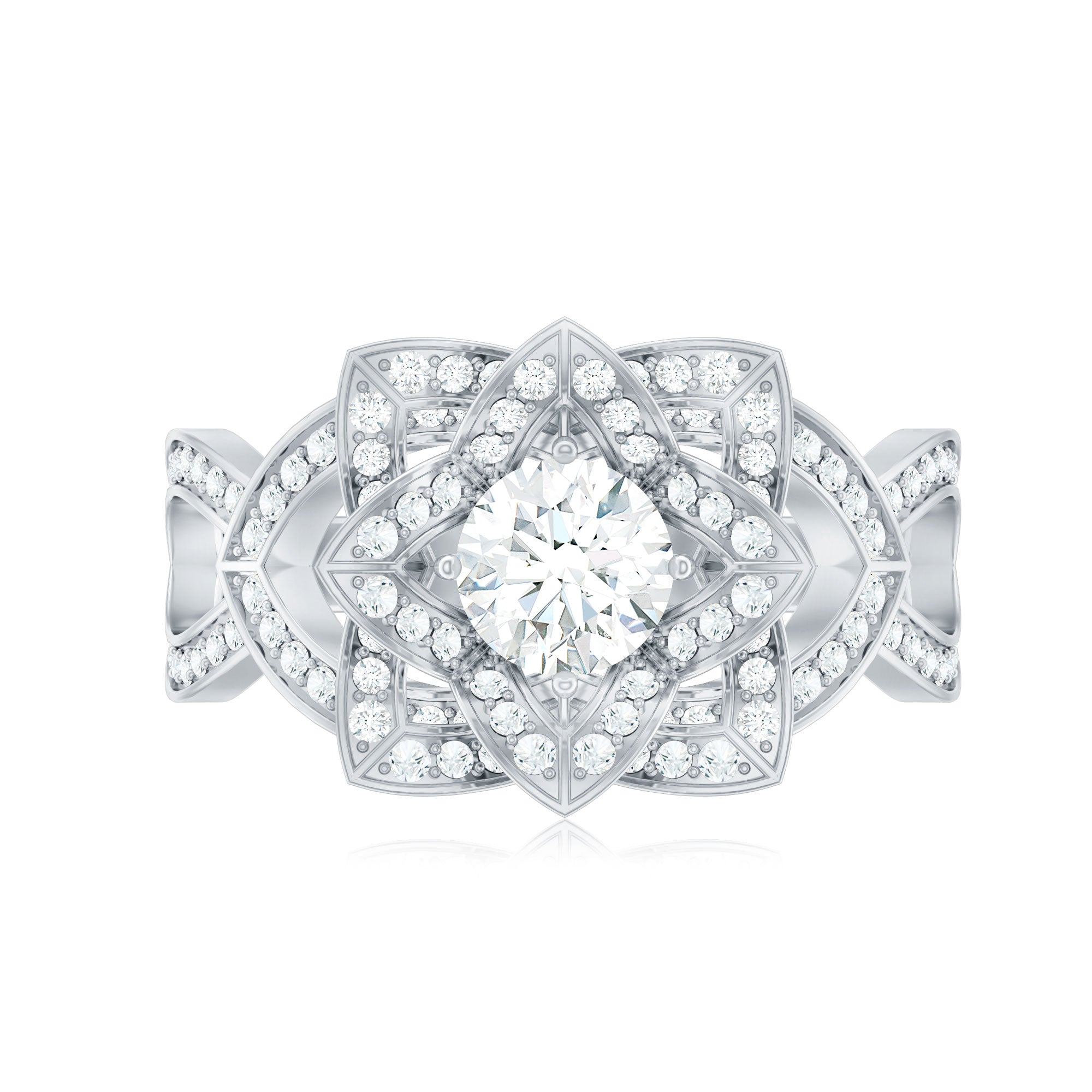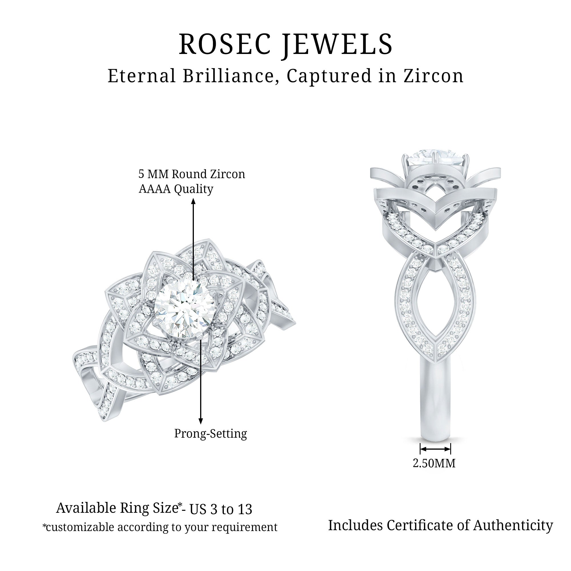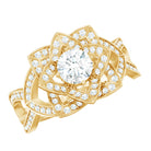 Vintage Style Zircon Floral Engagement Ring with Split Shank