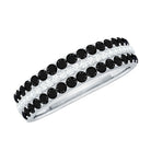 Make you forever stand out with this stunning Lab Black Diamond Ring as a symbol of enduring love with an edge that will always shine. This ring is adorned with Round Lab Created Black Diamond on the edges having a deep mysterious black hue and striking elegance. The wide band design creates a bold canvas for the mesmerizing D-VS1 Moissanite offering a modern and edgy look on this Male Wedding Band. Wrap around your finger in a continuous circle of beauty, representing a love that is as endless as it is extraordinary. Whether worn solo or paired with a complementary engagement ring, this Lab Black Diamond Eternity Ring will always make a striking statement.
