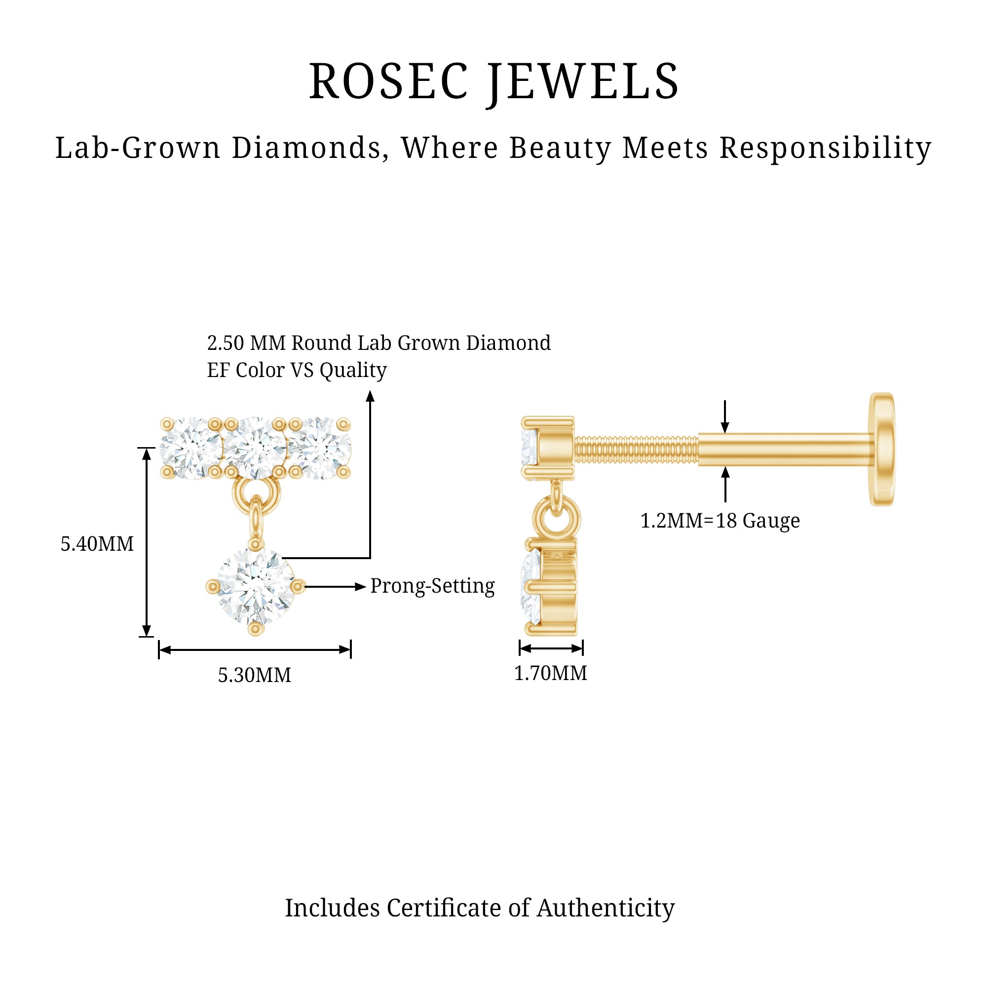 Do you love little ear pieces in your ear stacking? Then you need this Diamond Drop Earring. This exquisite piece features a row of Round Diamonds on the top while a dainty Round Diamond hangs as a drop creating a dangling effect. Perfect for adorning your Helix, Cartilage, Conch, Tragus, or Upper Lobe Piercing, this earring is both playful and chic, gracefully dancing with every move you make. Explore our stud collection to discover cute and trendy earrings and curate the perfect pair for creating the helix ear stack of your dreams!
