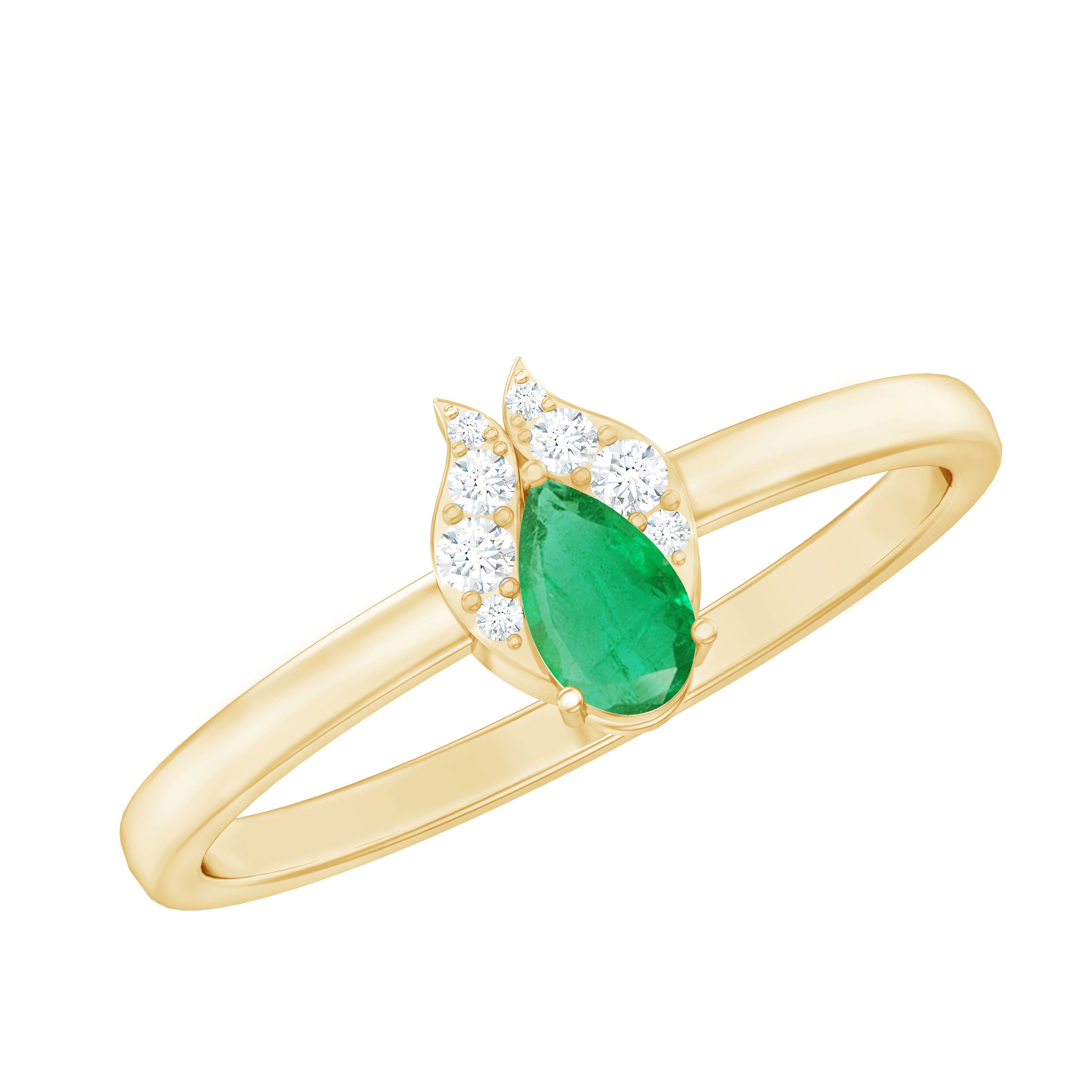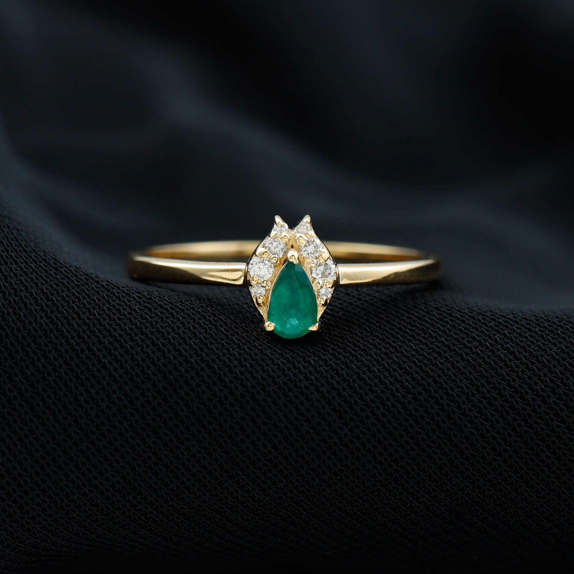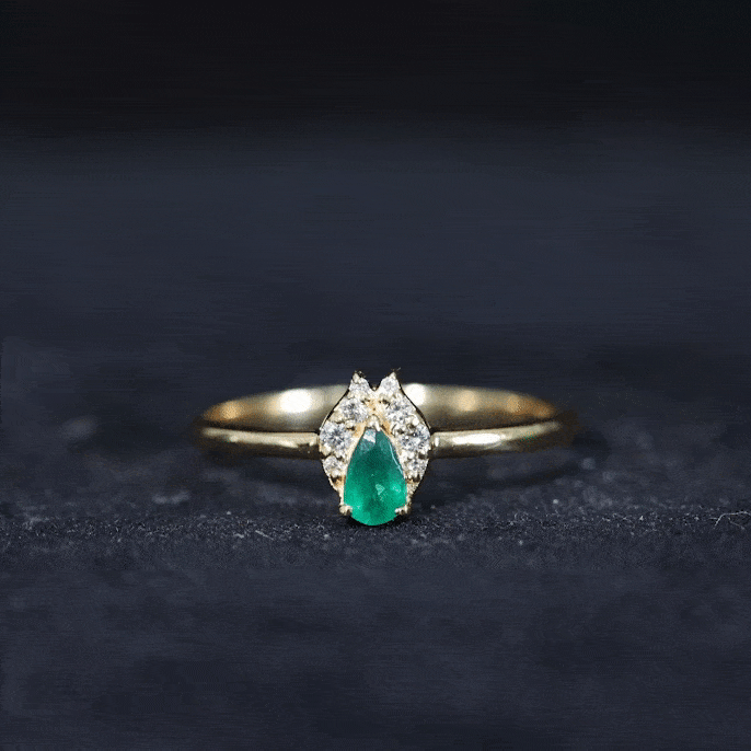A beautiful symbol of love and devotion, this Emerald and Diamond Ring is a timeless way to show your promise and commitment. At the heart of the Minimalist Promise Ring shines a 3X5 MM pear shaped emerald, set securely in prong setting. Flanking it are round brilliant cut diamonds that sit in a unique frame, adding a soft sparkle that perfectly complements the emerald’s rich hue. The combination of the emerald’s vibrant green and the diamond’s bright shine creates a lovely balance of color and light that feels both classic and modern. Perfect as a promise ring, a gift of friendship, or a token of lasting love, this Emerald Promise Ring is a heartfelt way to express your feelings. Its delicate design and graceful charm make it a piece she will treasure for years to come. Every stone in this Pear Shaped Ring is expertly crafted, and it comes with a certificate for quality and authenticity, so you can be confident in its lasting beauty. Available in a variety of ring sizes, it is designed to fit comfortably while maintaining its elegant look.