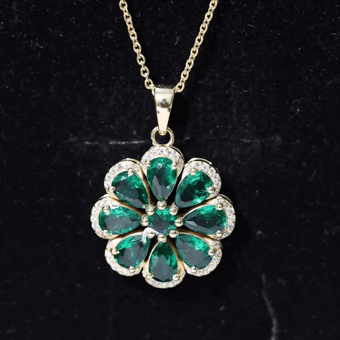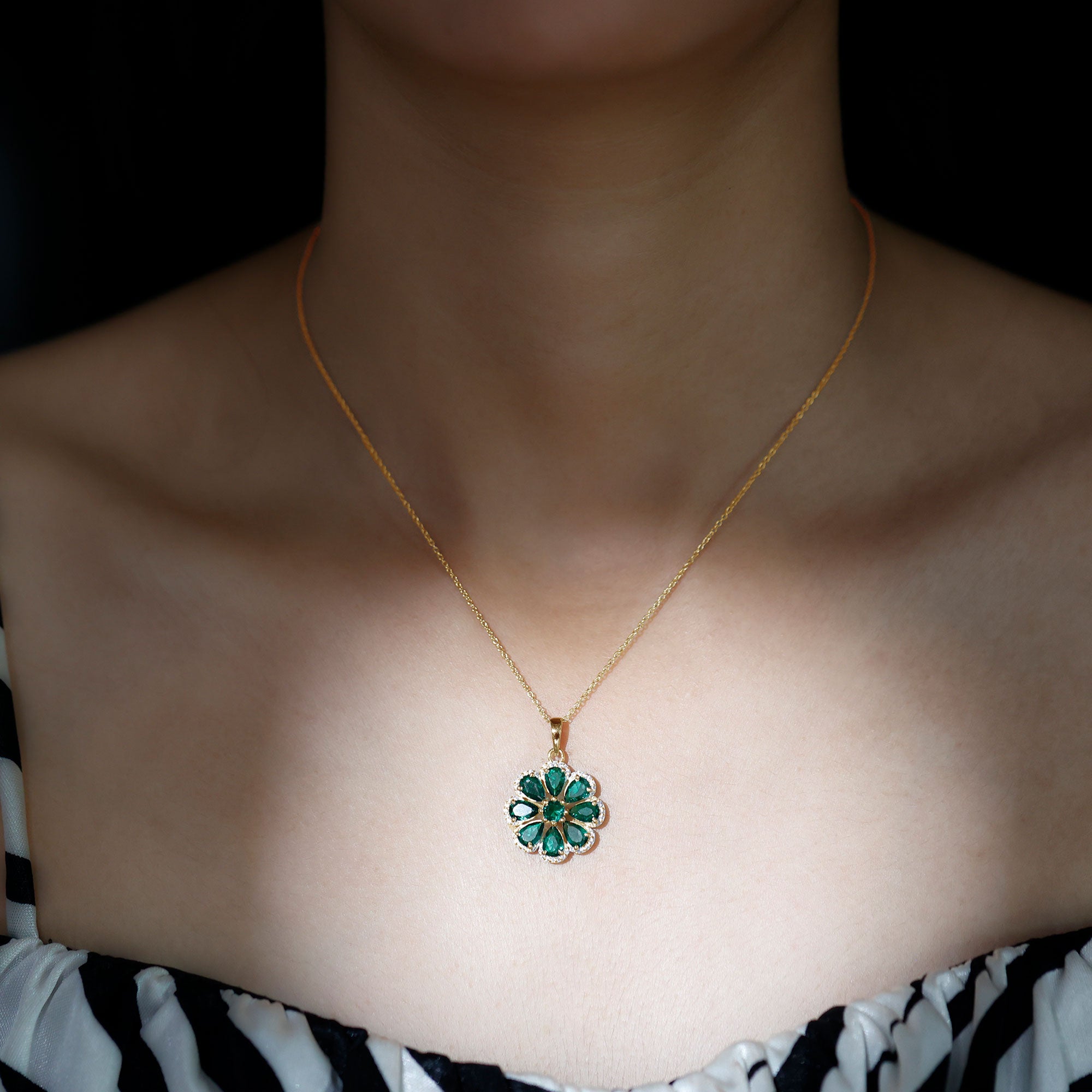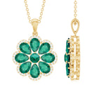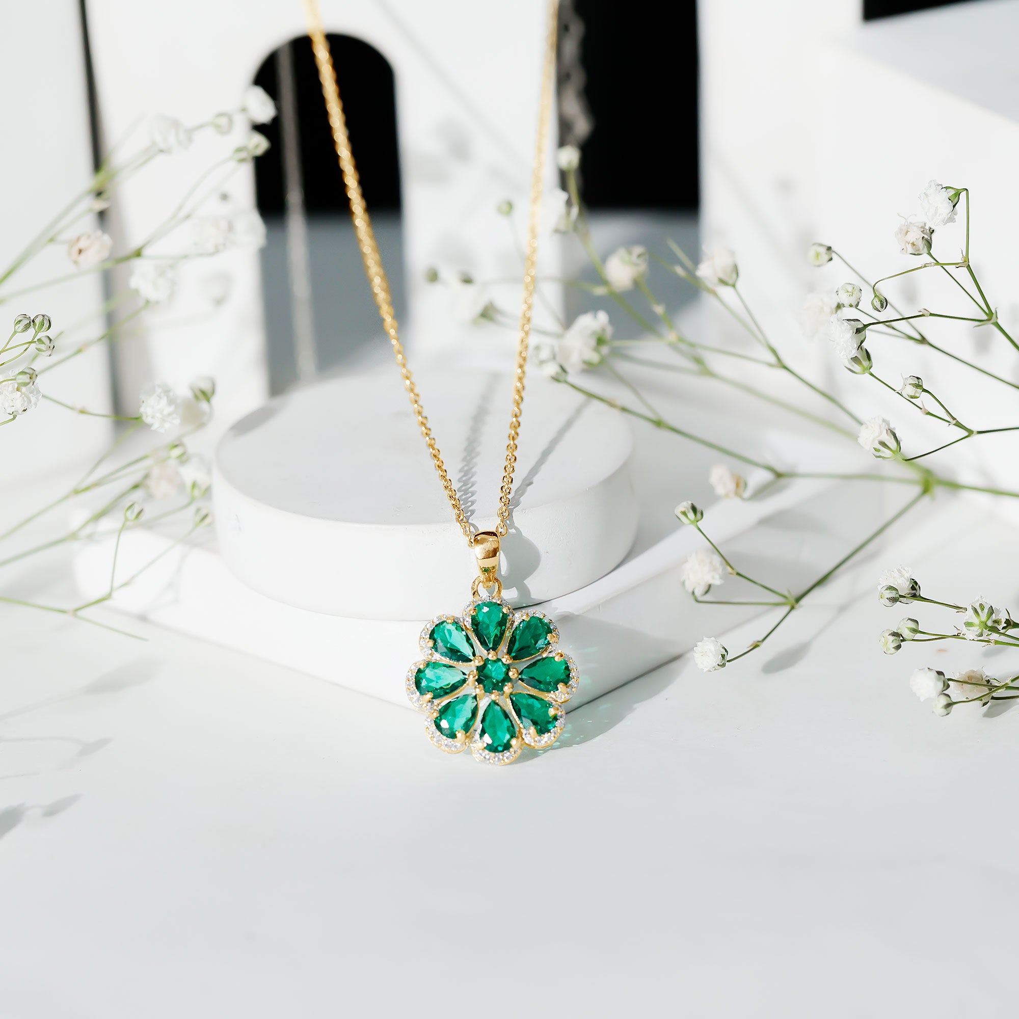Womens Lab Grown Emerald Flower Necklace with Chain