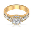 This Vintage Inspired Engagement Ring has a Princess Cut Zircon in Prong Setting in the center with Double Halo makes it a unique and exotic jewelry.