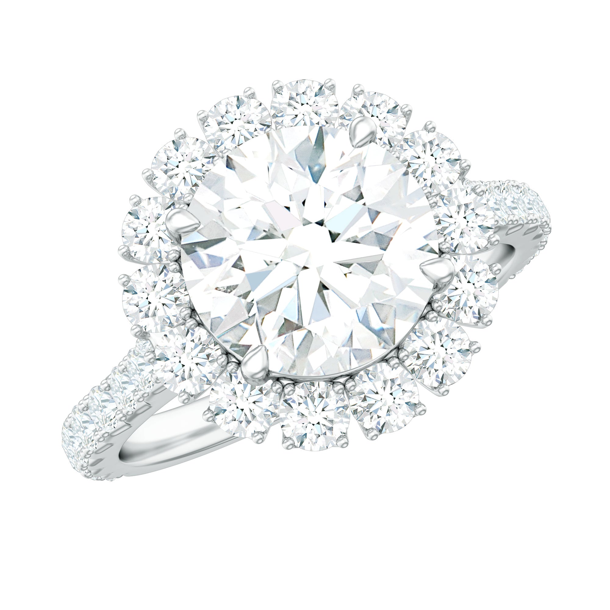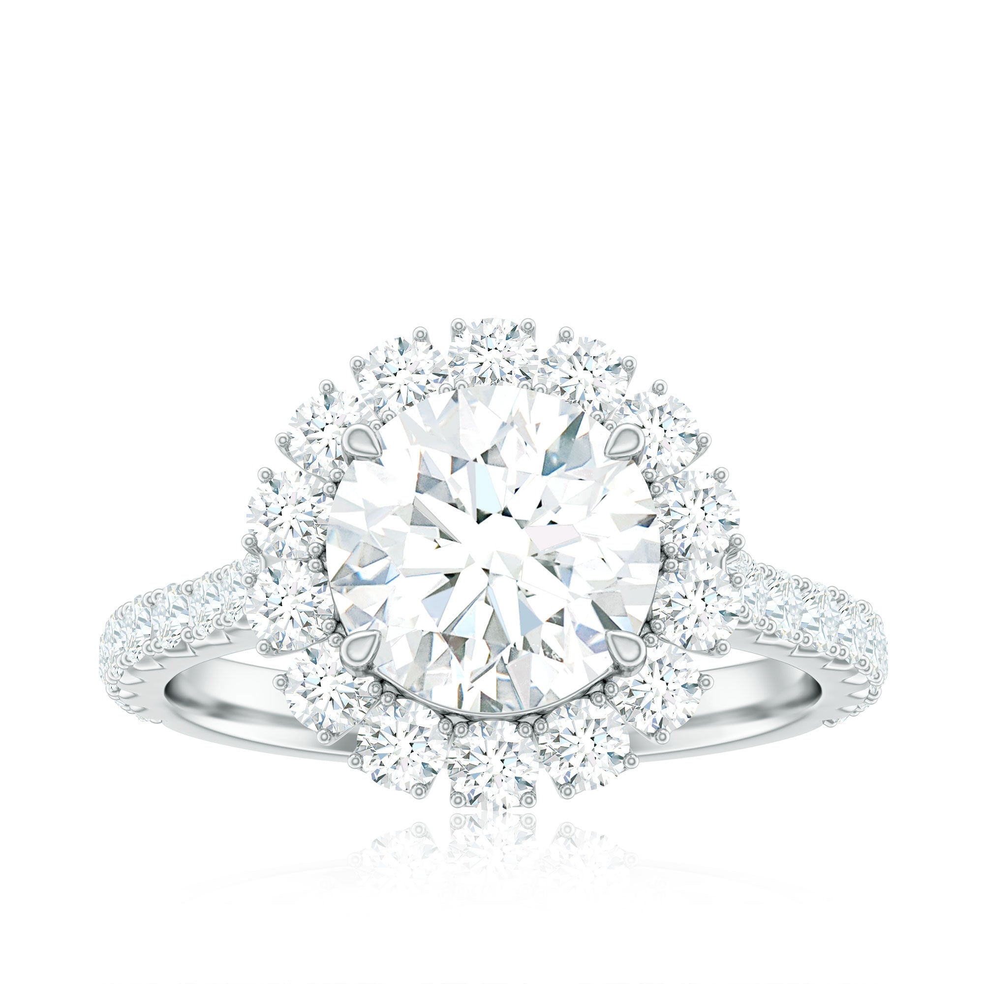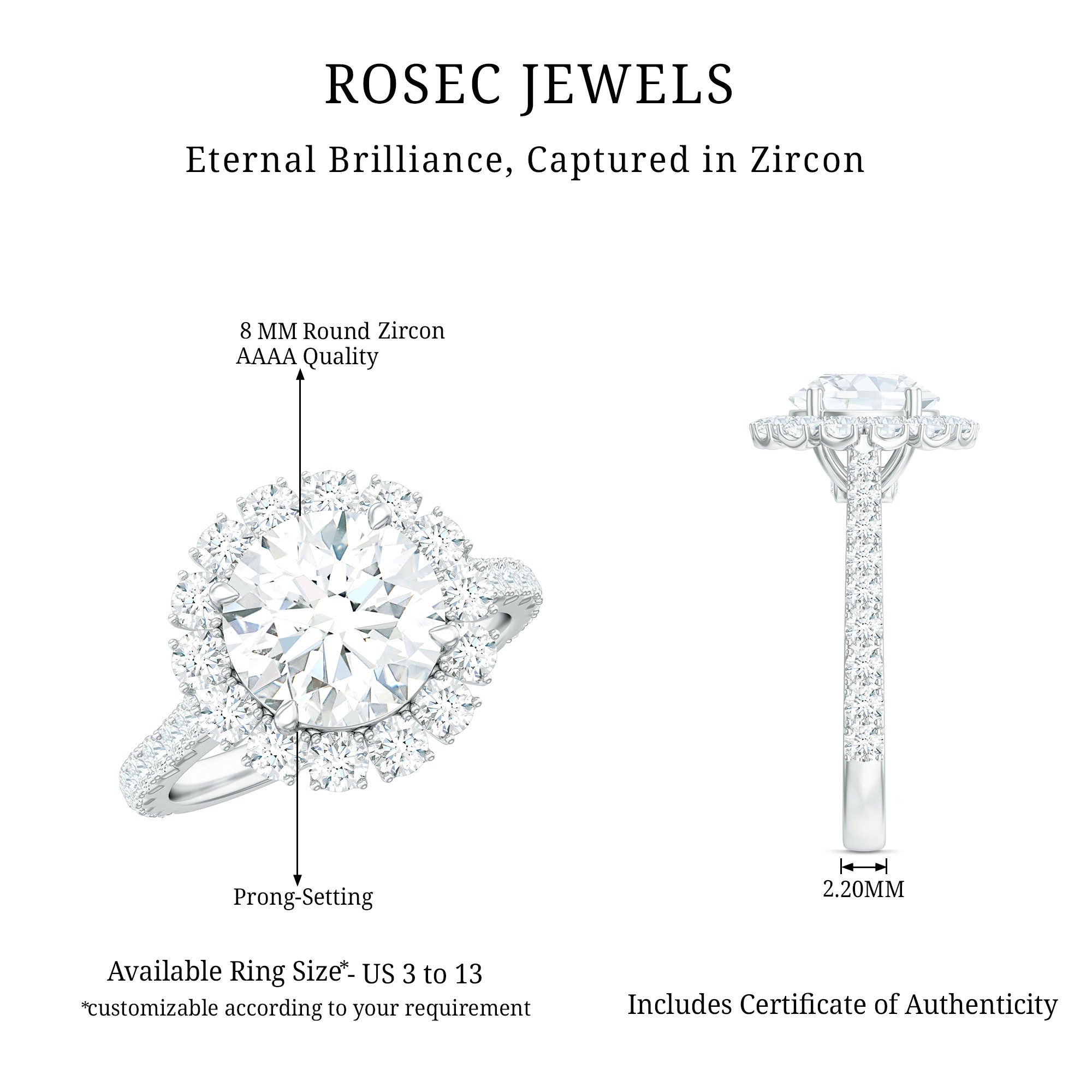 Zircon Round Engagement Ring with Floating Halo and Side Stones