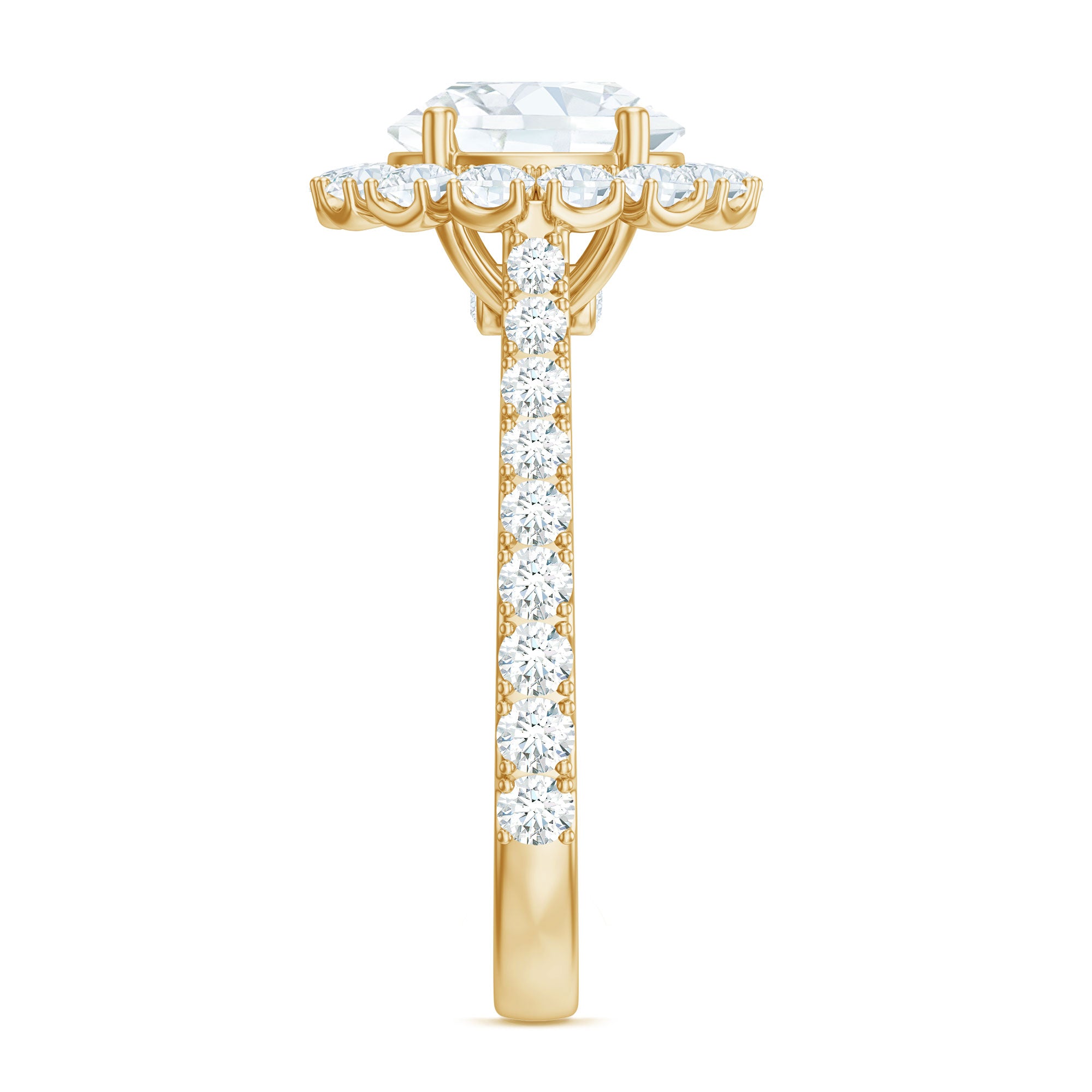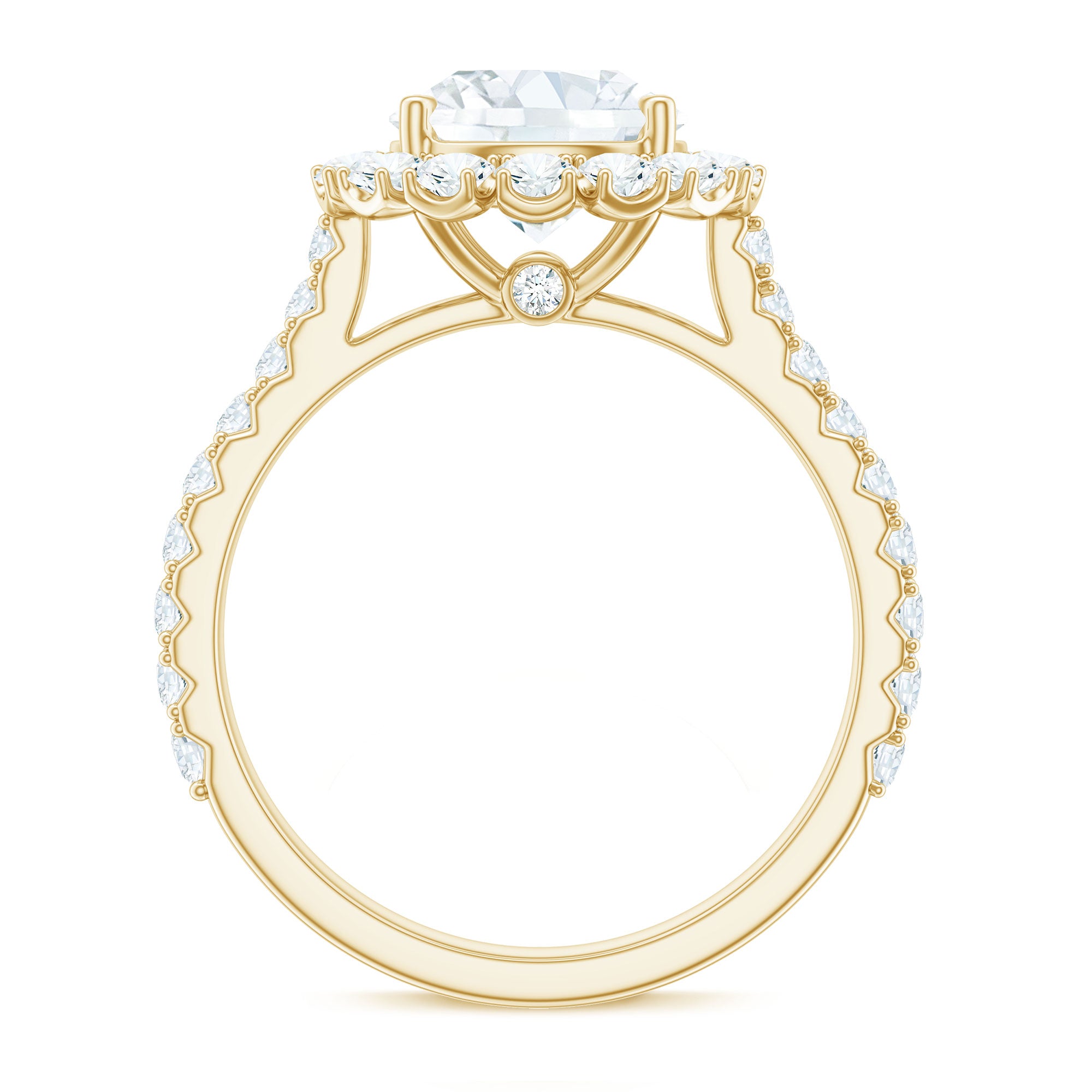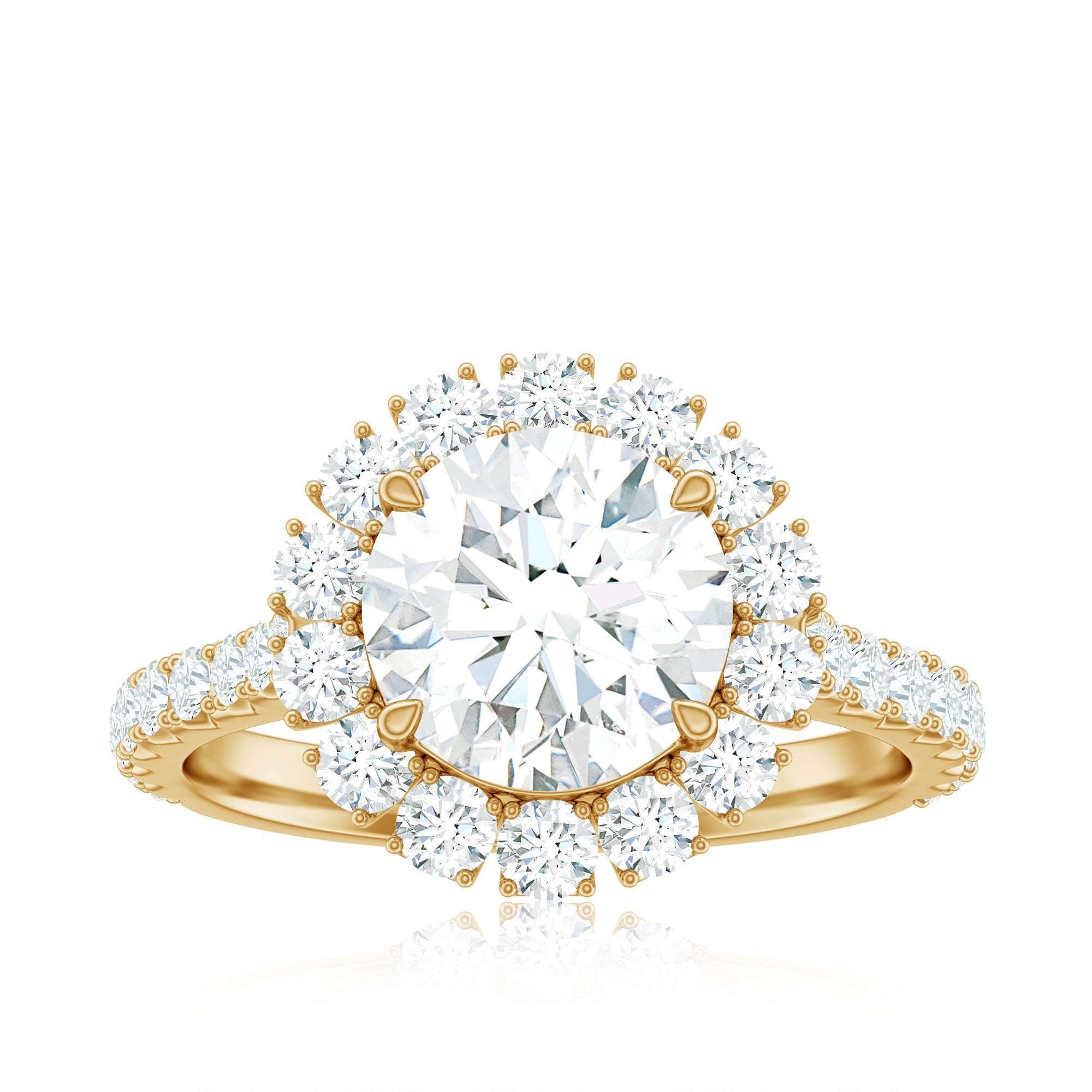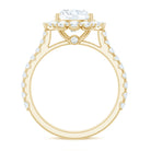 Zircon Round Engagement Ring with Floating Halo and Side Stones