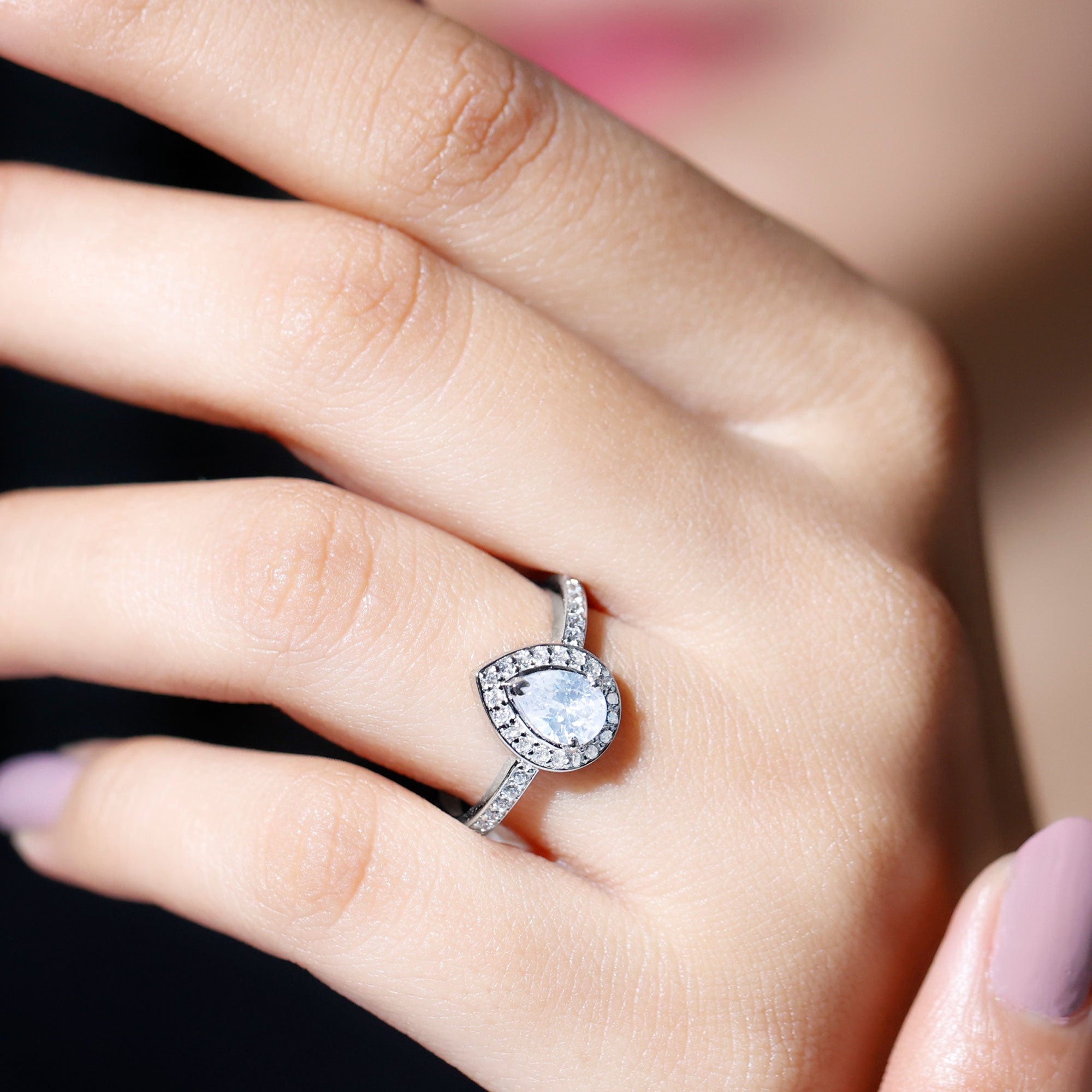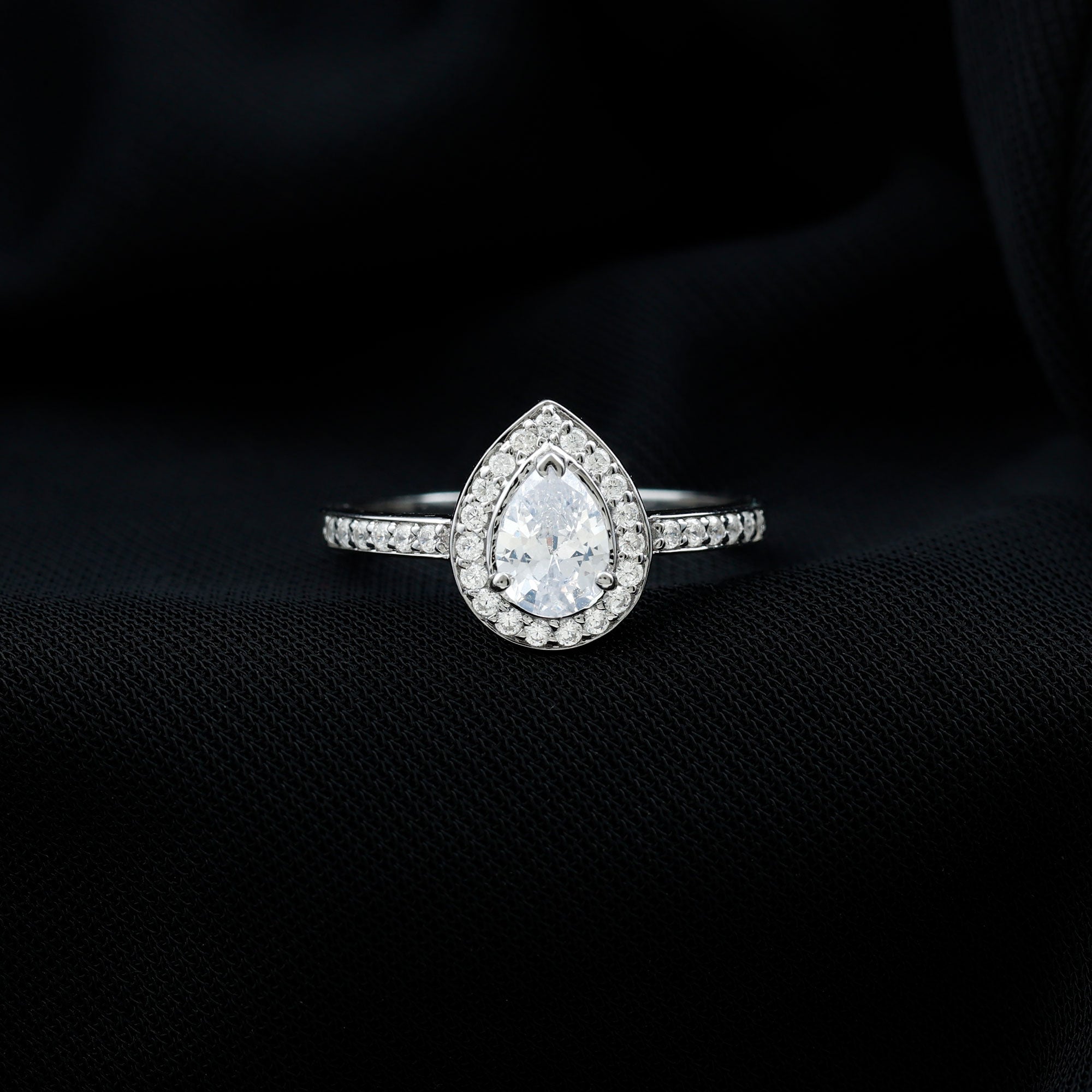 Zircon Teardrop Halo Engagement Ring