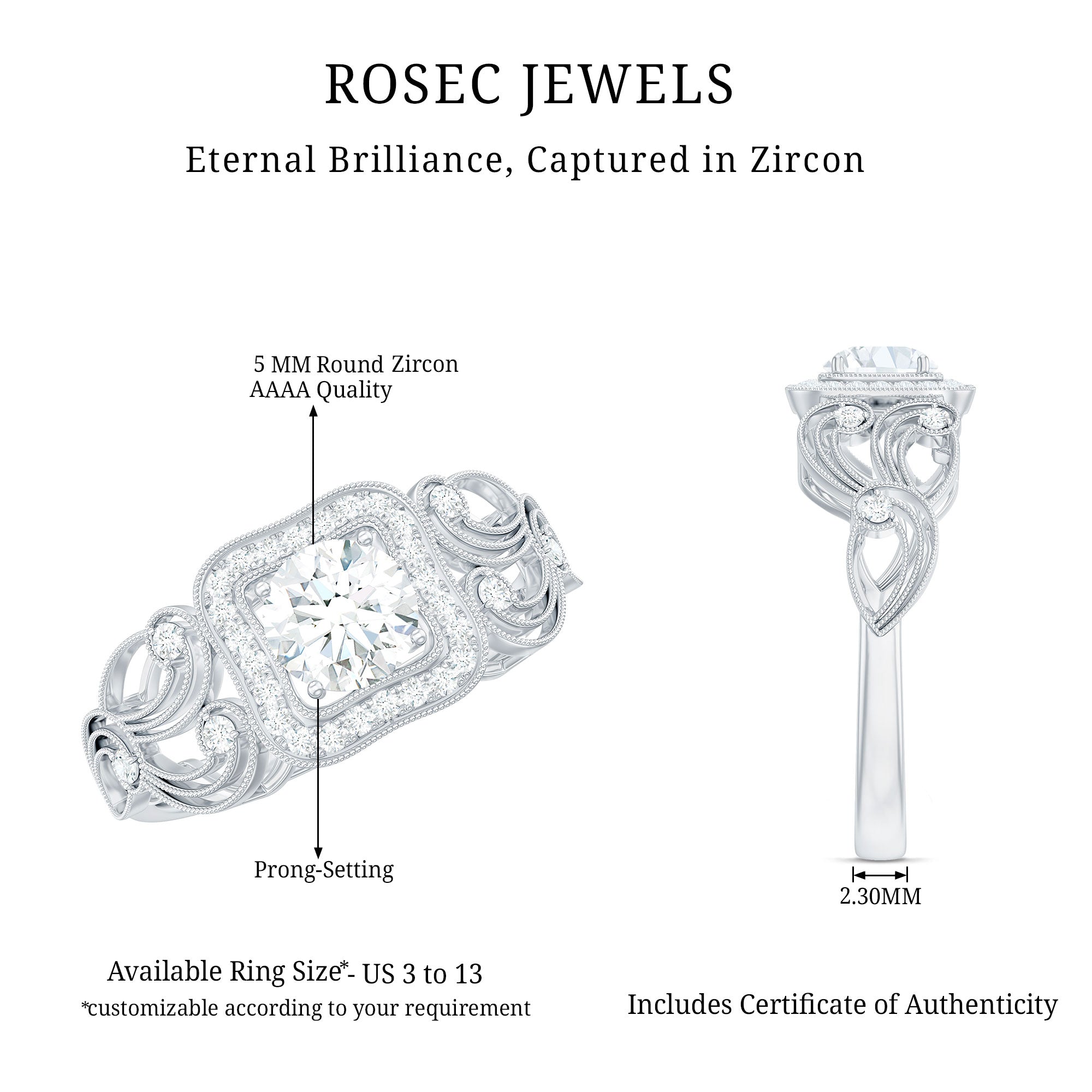 Zircon Vintage Inspired Halo Engagement Ring