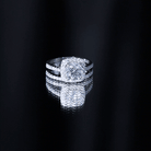Want to stun your bride on D-Day, present this CZ Wedding Ring Set to her. The ring set is crafted with 14K White Gold Plated Silver, featuring 8 MM Round shape Zircon encircled by a halo of smaller stones secured in Prong Setting on the Engagement Ring. The enhancer ring is studded with petite Zircon, which makes the ring set sparkle. This Square Engagement Ring with band symbolizes prosperity and protection, which makes it perfect for celebrating the union and the beginning of a new chapter. The Engagement Ring with Enhancer bears the classic shine of AAAAA Quality Zirconia, which makes it perfect for the big day.